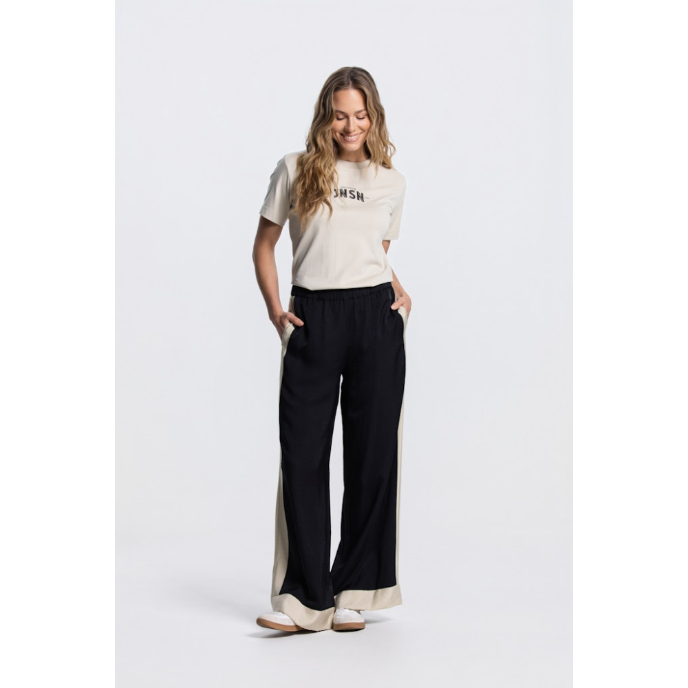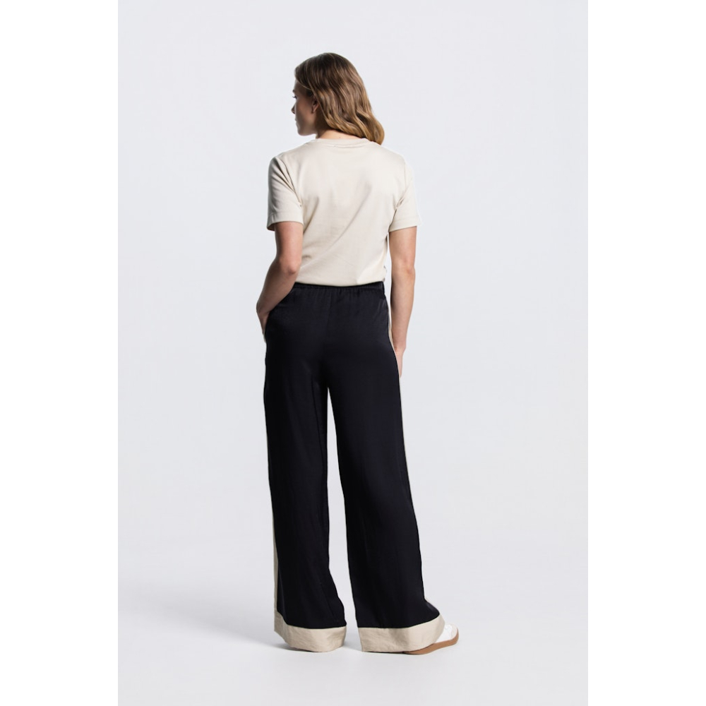Deze soepelvallende broek van Jansen Amsterdam heeft wijde broekspijpen, een elastische tailleband en koord als knoopdetail. Voorzien van steekzakken en een stijlvol colourblock detail op de zijbies, voor een moderne en casual-chic uitstraling.