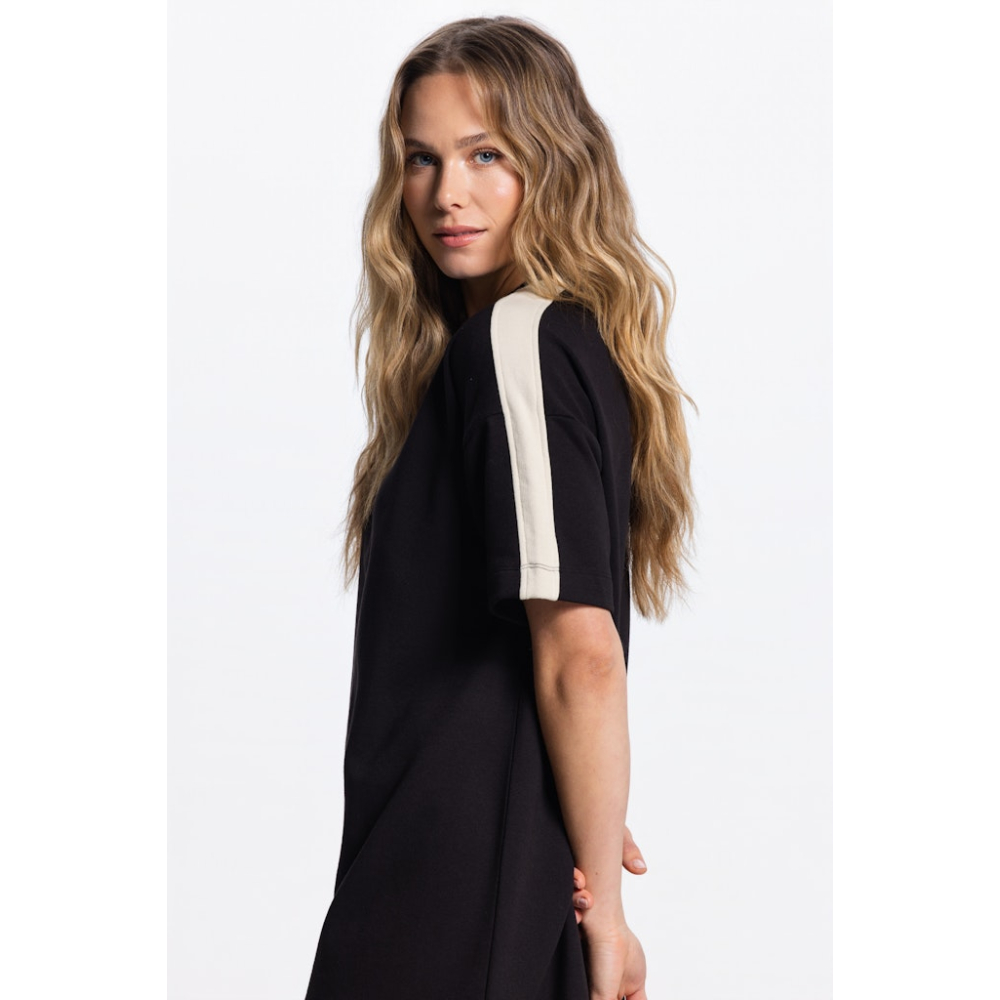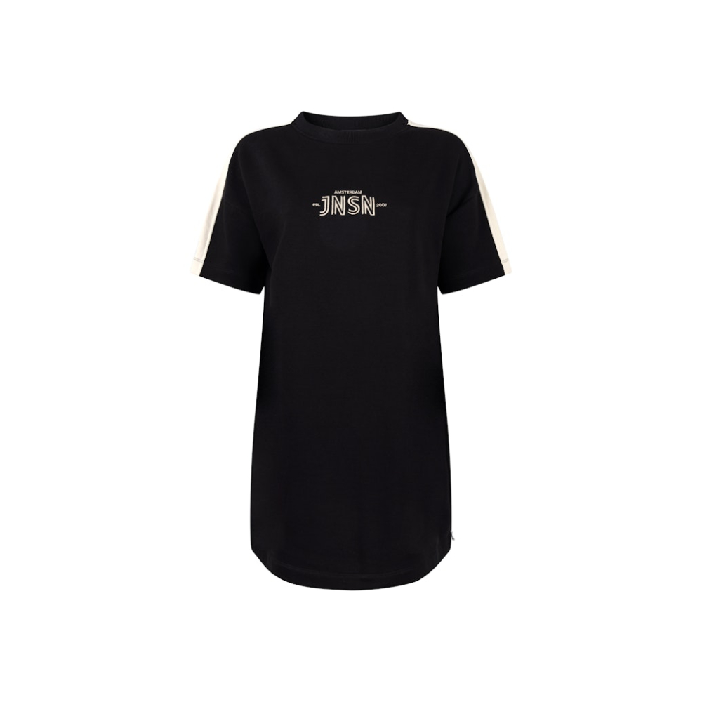 Deze sweaterjurk van Jansen Amsterdam heeft een rechte fit, korte mouwen en is voorzien van een contrasterende bies op de mouw. Comfortabel, modern en perfect voor een casual-chic look.