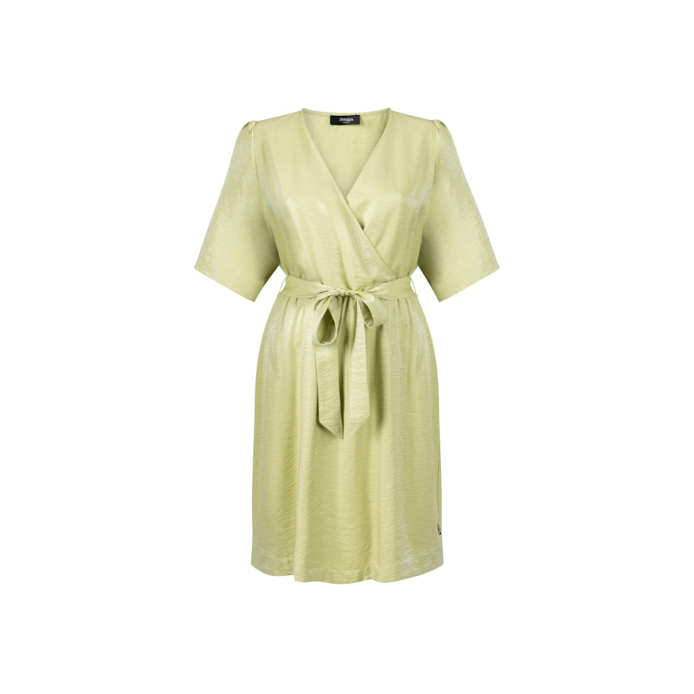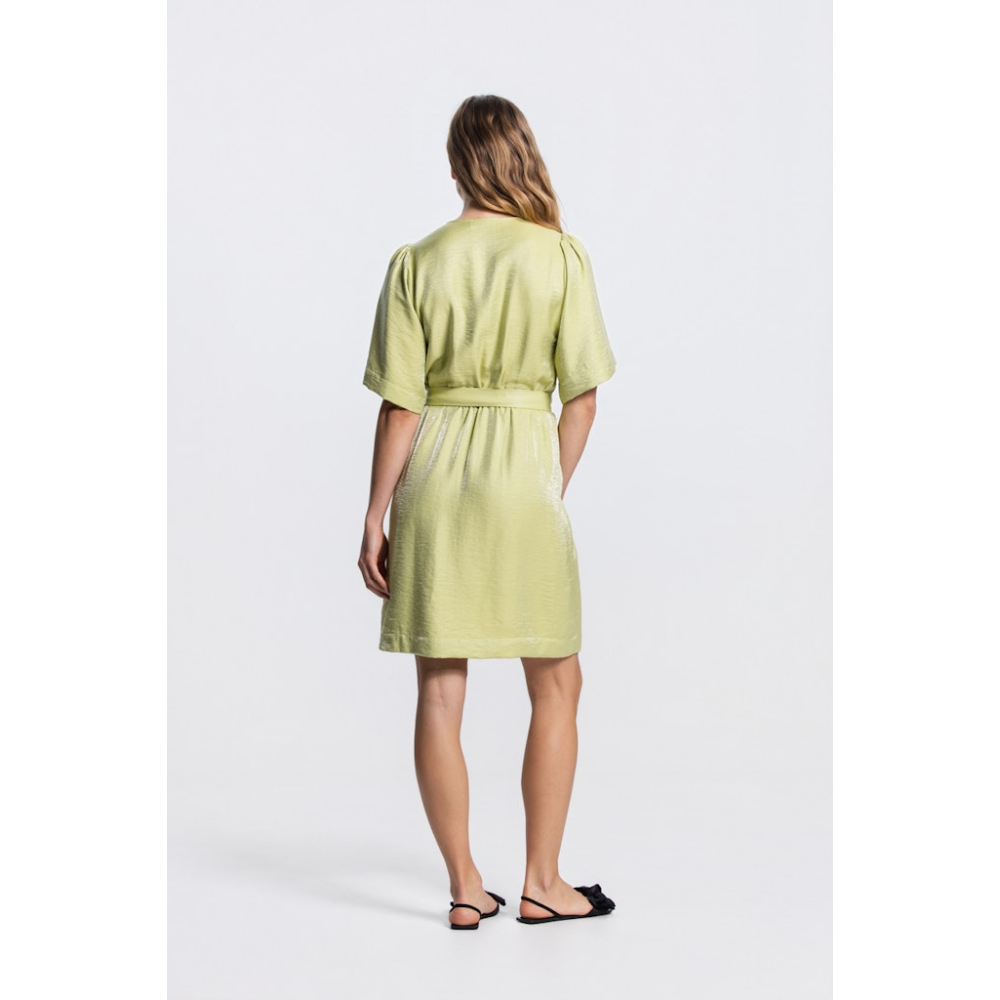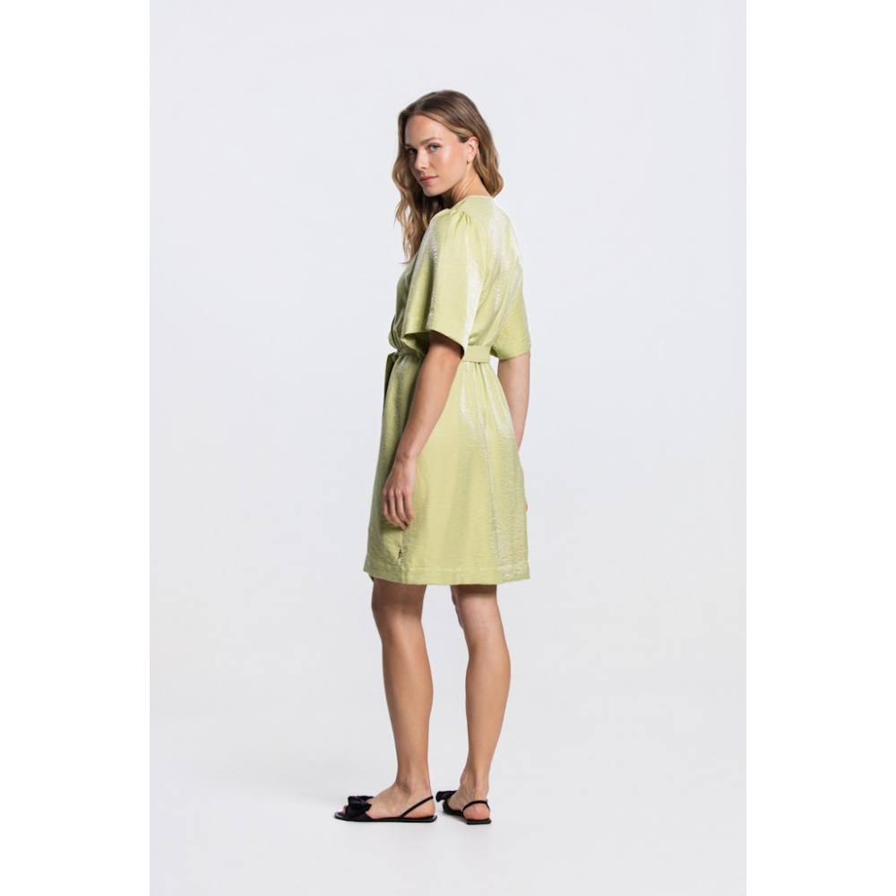 Een korte jurk van Jansen Amsterdam met een driekwart mouwen en een elegante overslag. Het jurkje heeft een elastische tailleband voor een flatterende pasvorm, afgewerkt met een bijpassend ceintuur. Perfect voor een casual-chic of elegante look.