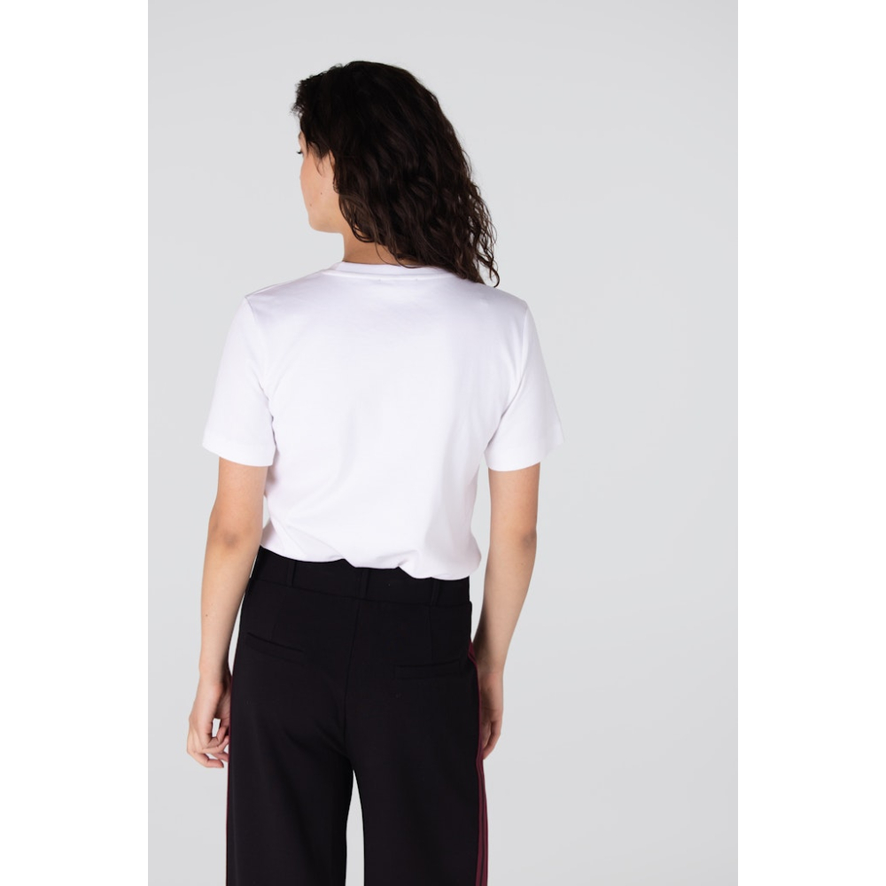 Dit comfortabele Jansen Amsterdam shirt van jersey kwaliteit heeft een ronde hals en biedt een comfortabele, luxueuze gevoel. De ribboord in de hals zorgt voor een mooie afwerking, terwijl het subtiele logo in zwart lurex garen een verfijnde, vrouwelijke touch toevoegt.