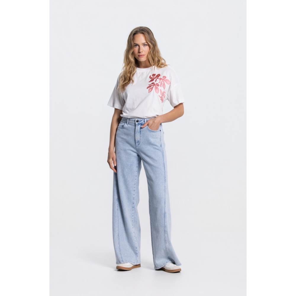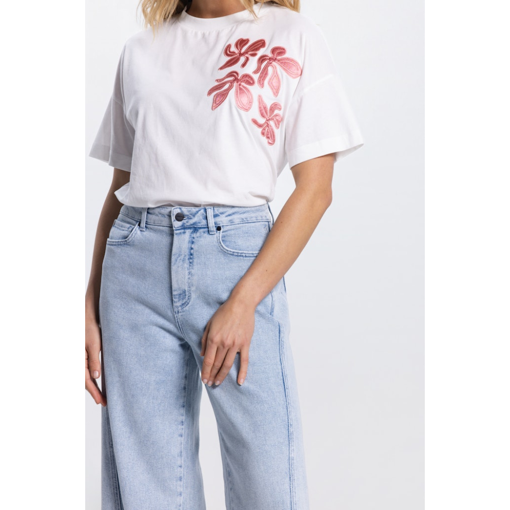 Dit wijdvallende Jansen Amsterdam shirt is subtiel versierd met elegante satijnen bloemen, wat een stijlvolle en vrouwelijke touch geeft aan dit comfortabele item. Gemaakt van 100% katoen Kleur : Blush