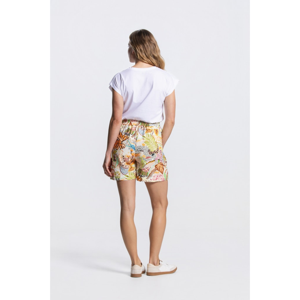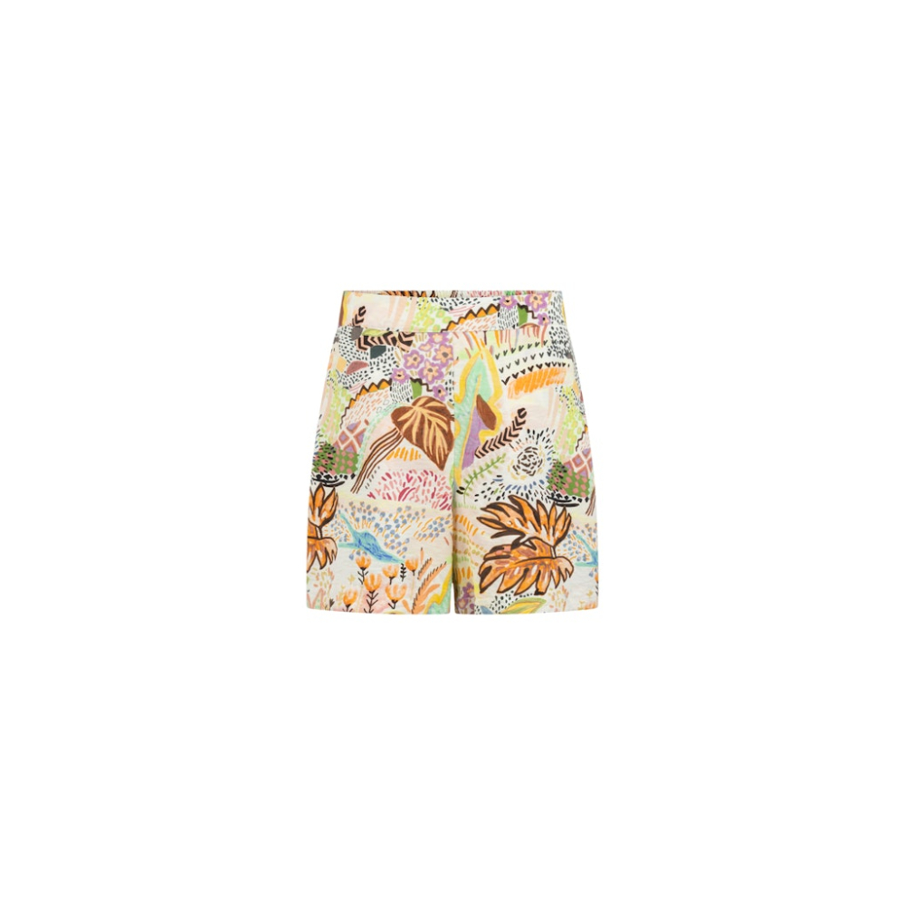 Een comfortabele korte broek van Jansen Amsterdam met een elastische achterband voor een perfecte pasvorm, fijne steekzakken en een kleurrijk dessin. Ideaal voor een casual-chic en vrolijke zomerlook.