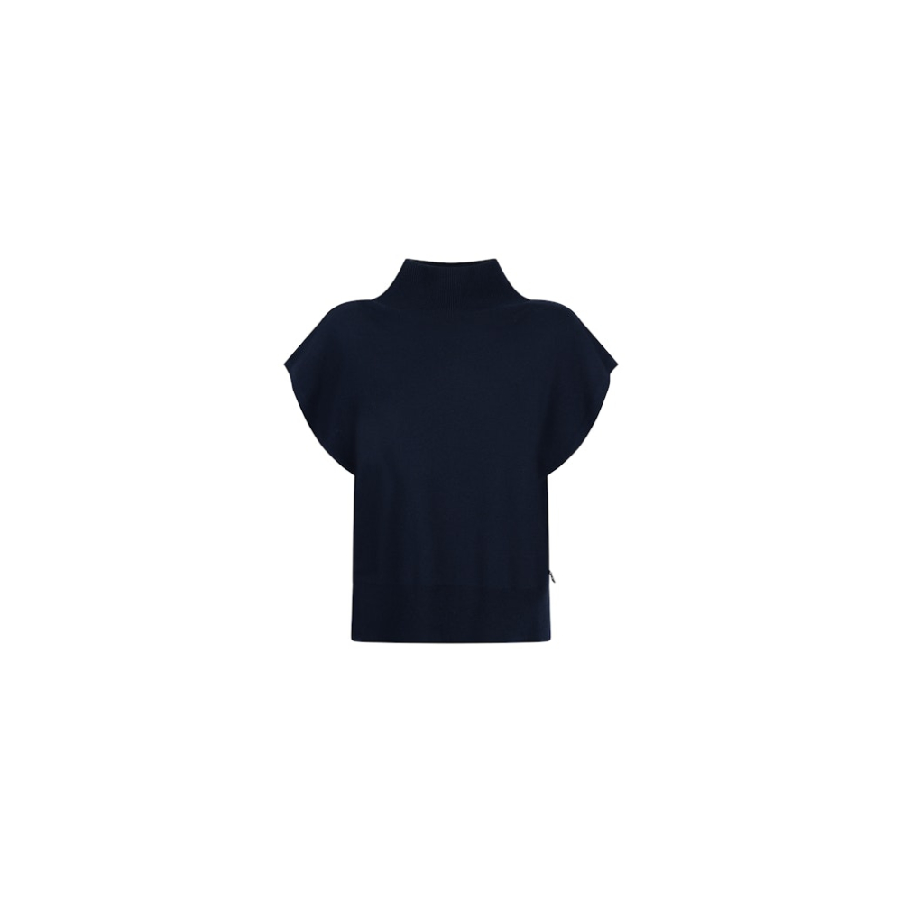 Een stijlvolle, mouwloze trui top van Jansen Amsterdam met een moderne twist. Dankzij de hoge col en de splitten in de zijnaad straalt deze trui zowel elegantie als comfort uit. Een must-have voor een minimalistische en toch verfijnde outfit.