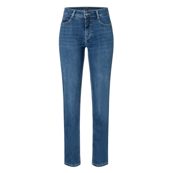 De Dream jeans van MAC heeft een normale taillehoogte en rechte, slanke pijp.
