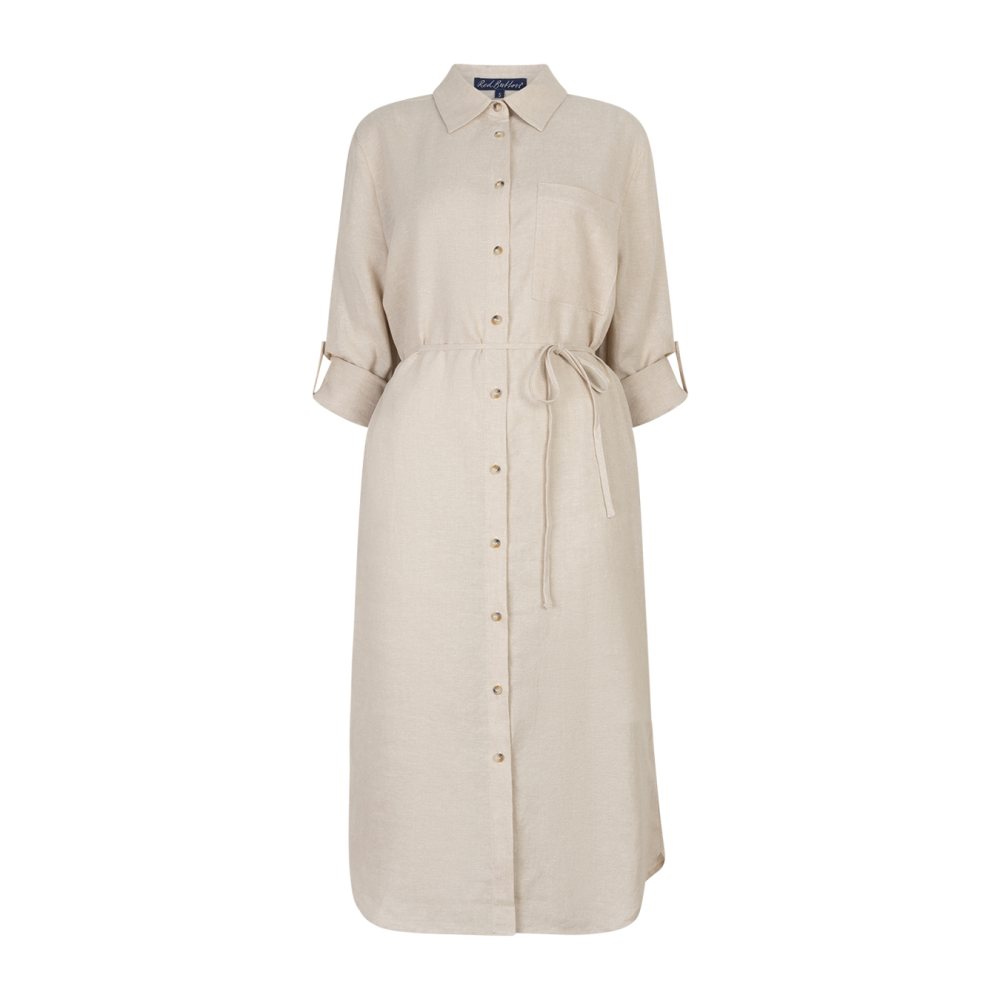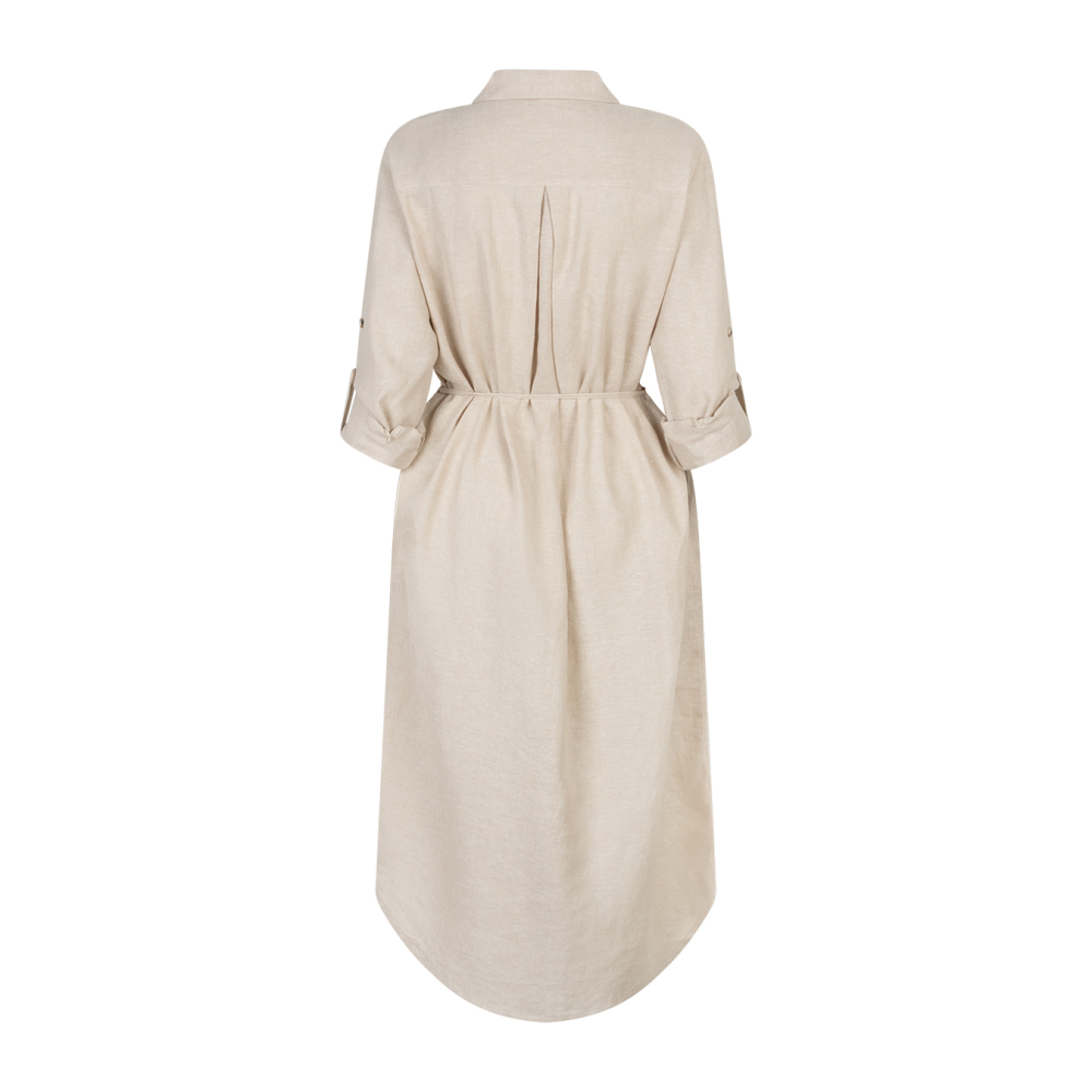 Zeer zachte en comfortabele blouse jurk van Red Button in een zomerse linnen kwaliteit. Deze doorknoopjurk heeft lange mouwen met turn up functie en een strikkoord in de taille. Regular Fit Gemaakt van 55% linnen en 45% viscose Kleur : Pebble