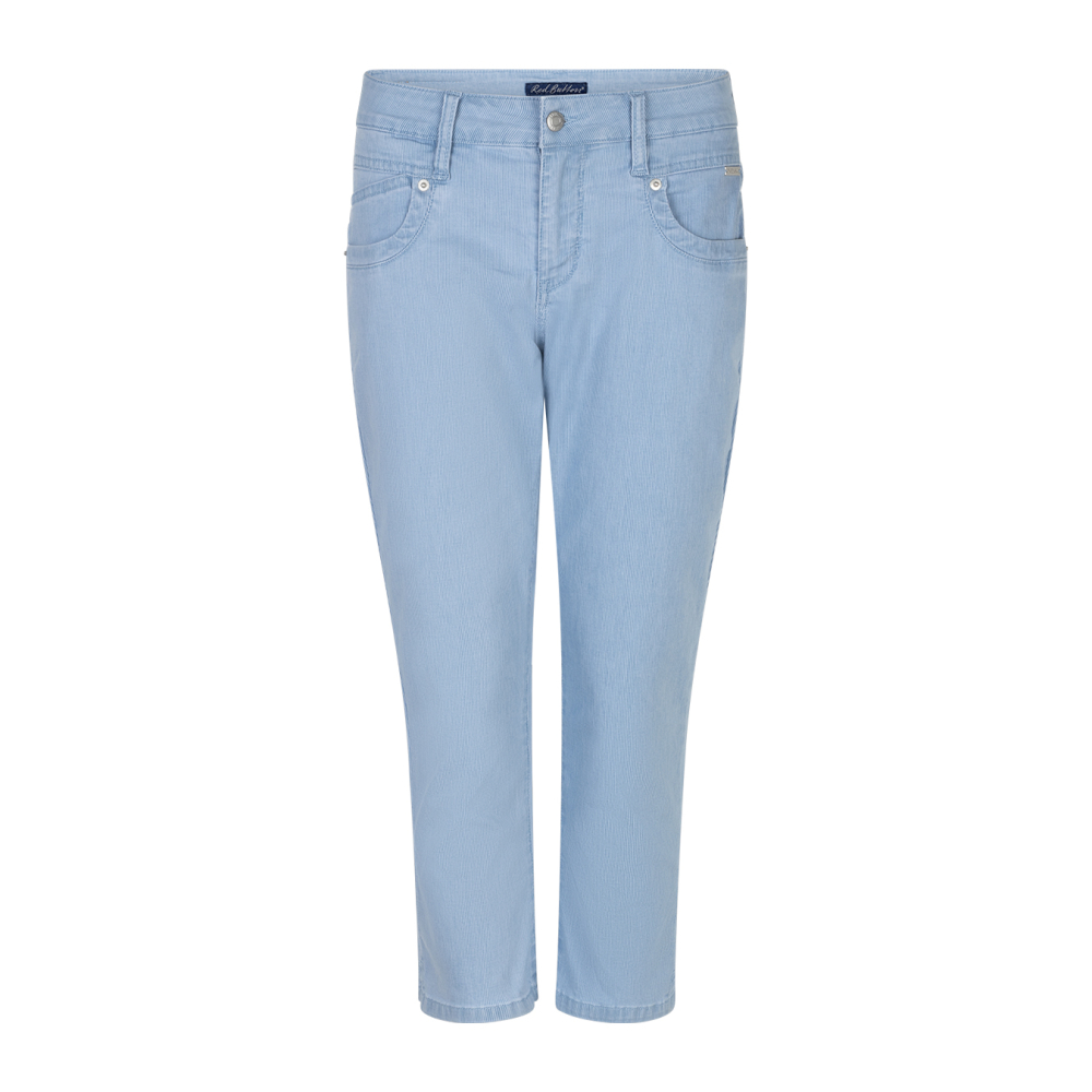 Denim capri van Red Button met een normale taille. Deze capri heeft een lengte 20. Regular Fit Gemaakt van 65% katoen, 23% gerecycled polyester, 10% viscose en 2% elastaan Kleur : Bleach Blue