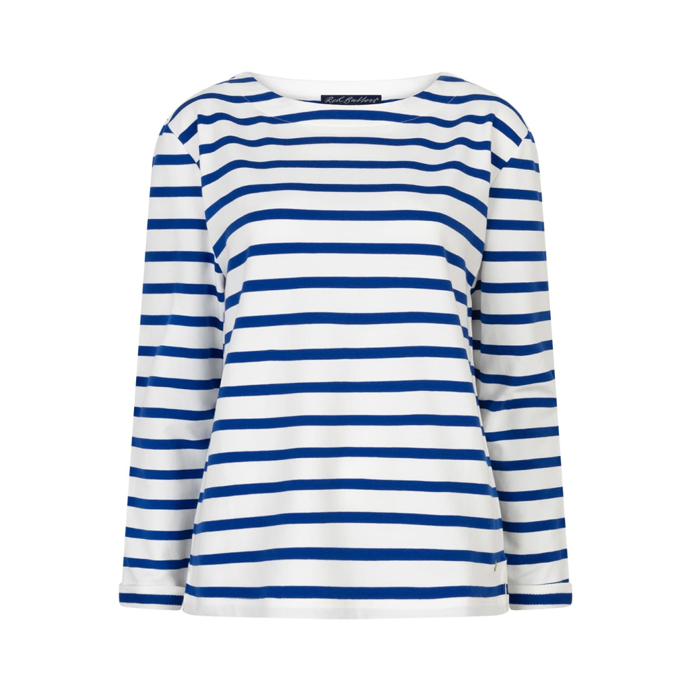 Gestreept longsleeve shirt van Red Button met een wijde ronde hals en splitjes aan de zoom. Gemaakt van 96% katoen en 4% elastaan Kleur : Cobalt