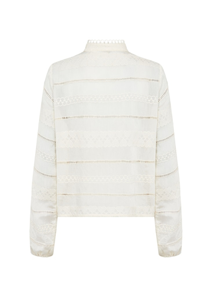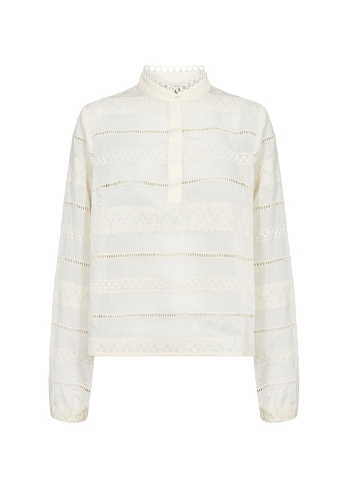 Deze elegante blouse van Soyaconcept heeft een opstaamde kraag en elastische manchetten.