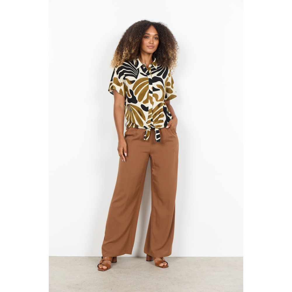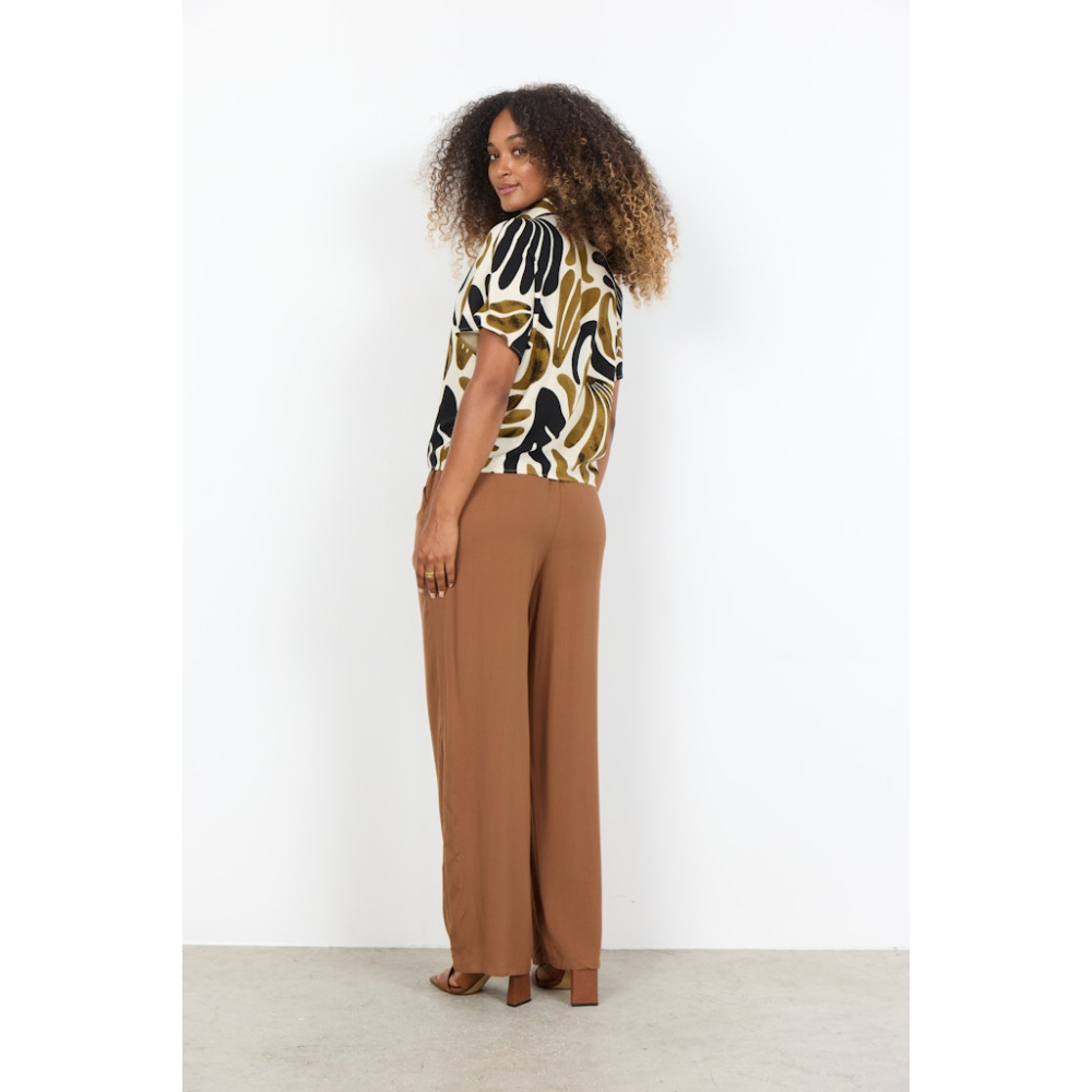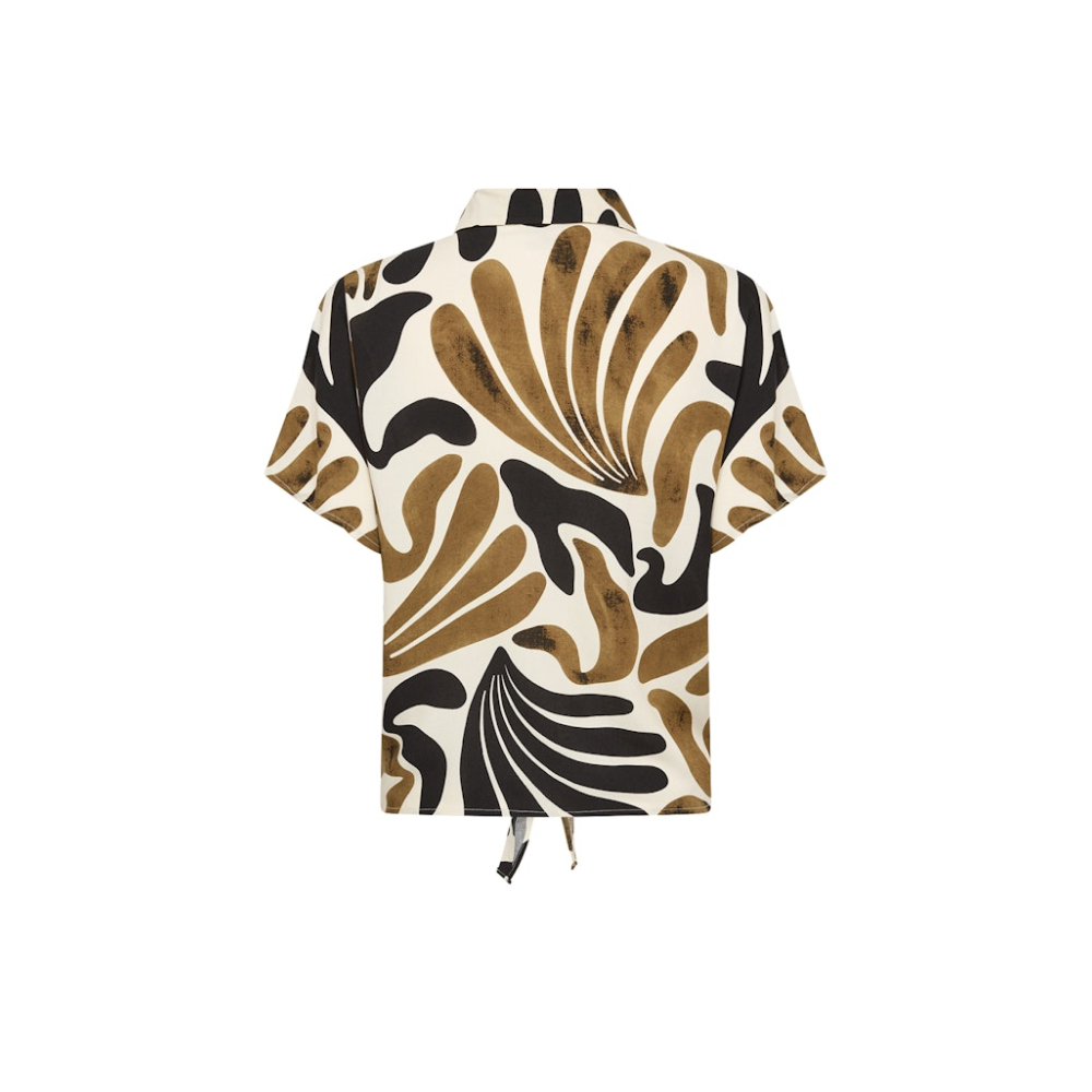 Elegante blouse van Soyaconcept met een klassieke kraag, abstracte print en een stijlvol knoopdetail. Combineer met een pantalon of rok voor casual chic look.