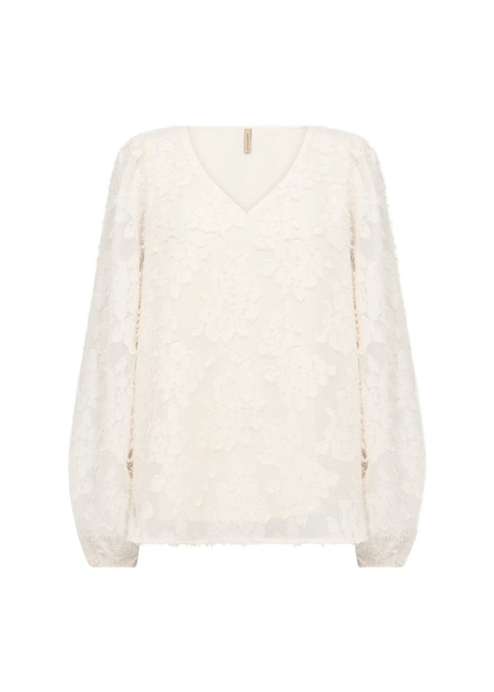 Deze blouse heeft een delicate bloem structuur wat het een elegante look geeft.