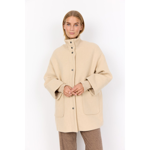 Stijlvolle jas van Soyaconcept met een hoge kraag en opgestikte zakken.