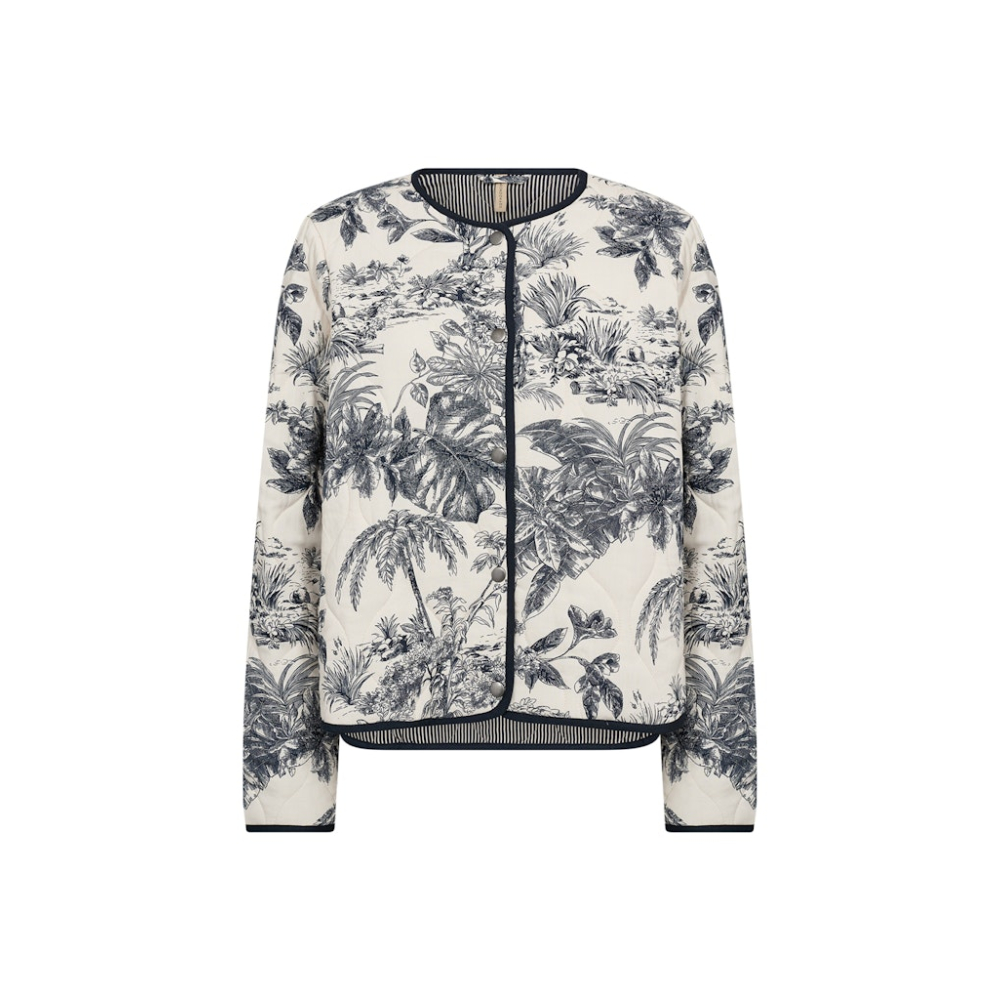 Prachtig jasje van Soyaconcept met een ronde hals en drukknoopsluiting. De in het oog springende botanische print op een quilt structuur maken dit tot een uniek item. Combineer met een donkere jeans of wijde pantalon tot een casual chic look.