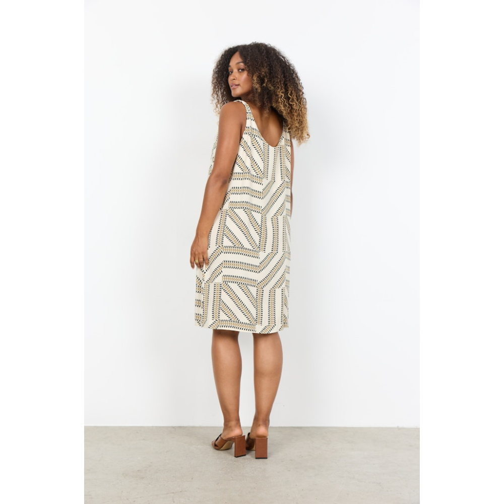 Heerlijk zomers jurkje van Soyaconcept met een unieke geometrische print. Draag het met sandaaltjes voor een casual look of ga voor een stijlvolle avond look. Gemaakt van 100% ecovero viscose Kleur : Olive