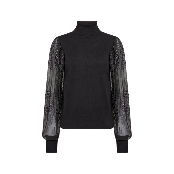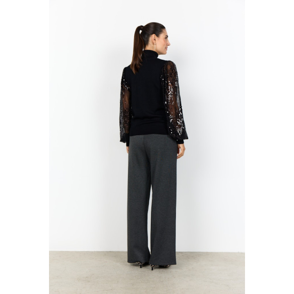 Elegante pullover van Soyaconcept met een hoge halslijn en delicate mesh mouwen afgezet met pailletten.