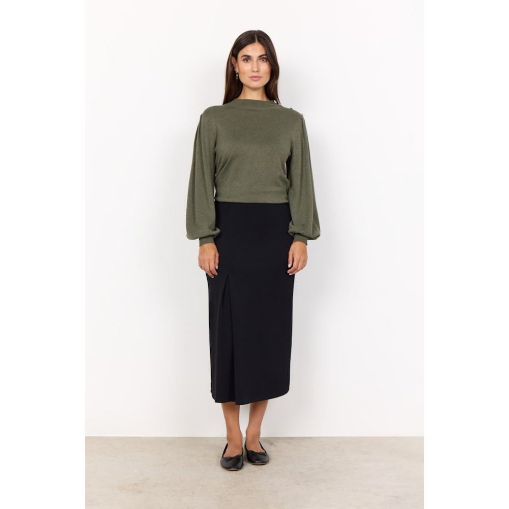 Klassieke rok van Soyaconcept met een hoge taille en een split aan de voorzijde.