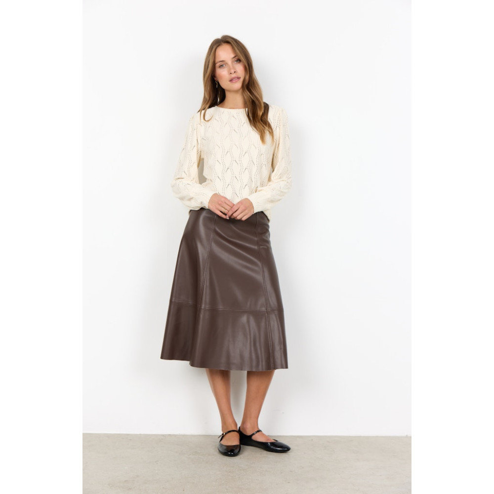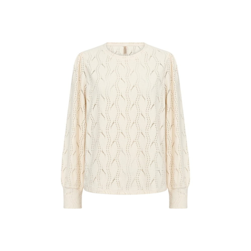 Prachtige top van Soyaconcept met een ronde hals en een opengewerkt weefpatroon. De top heeft licht gepofte mouwen met manchetten. Combineer met een pantalon of rok tot een elegante look.