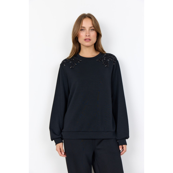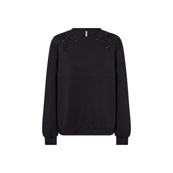 Heerlijk comfortabele sweater van Soyaconcept met een ronde hals en elegante broderie details op de schouders.