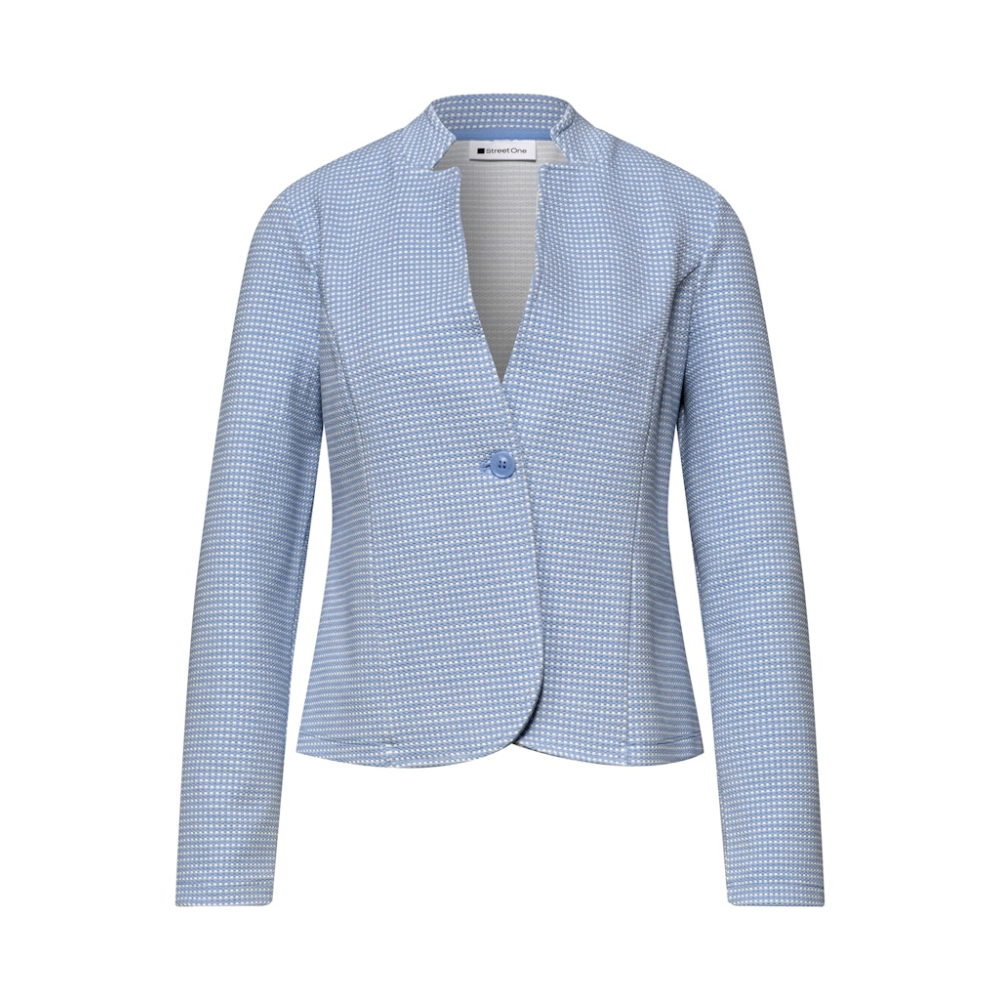 Deze comfortabele blazer van Street One in jersey kwaliteit heeft een moderne en frisse two tone look. Dankzij het hoge draagcomfort wordt deze klassieke blazer met kapel kraag al snel een favoriet voor elke dag.