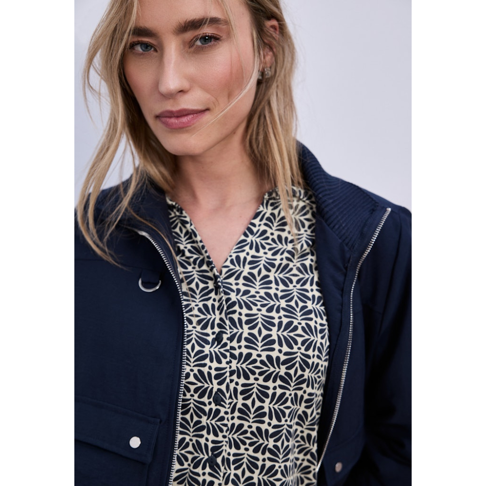 Deze blouse van Street One combineert de luchtigheid van een jersey shirt met de stijl van een vrouwelijke blouse. Een overhemdkraag en korte knoopsluiting geven het ontwerp een klassieke uitstraling, terwijl het grafische patroon moderne accenten toevoegt. Een veelzijdig item dat stijlvol kan worden gecombineerd met zowel casual als elegantere looks.