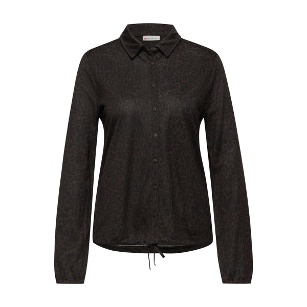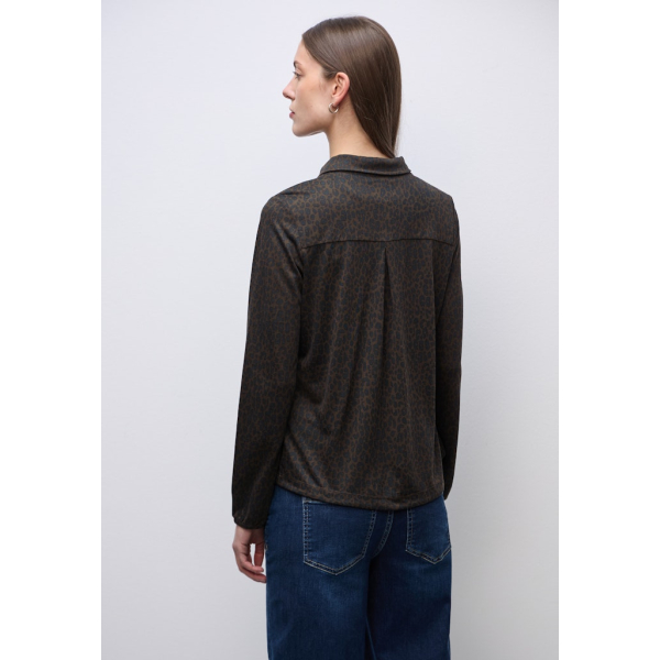 Deze comfortabele blouse van Street One voor dames combineert een klassieke overhemdkraag met een speelse luipaardprint.
