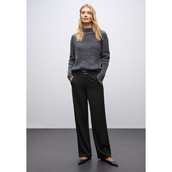 Deze broek van Street One voor dames heeft een tailleband met gespdetail en rechte pijpen.