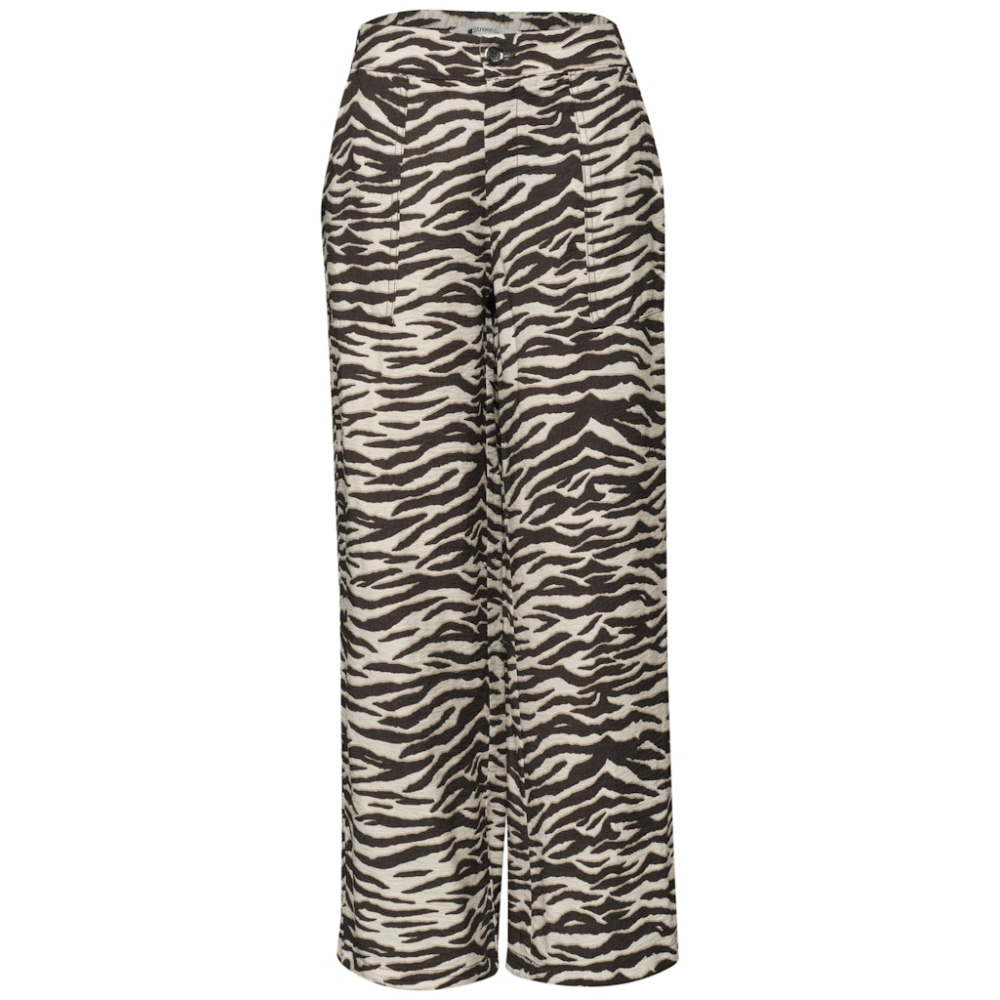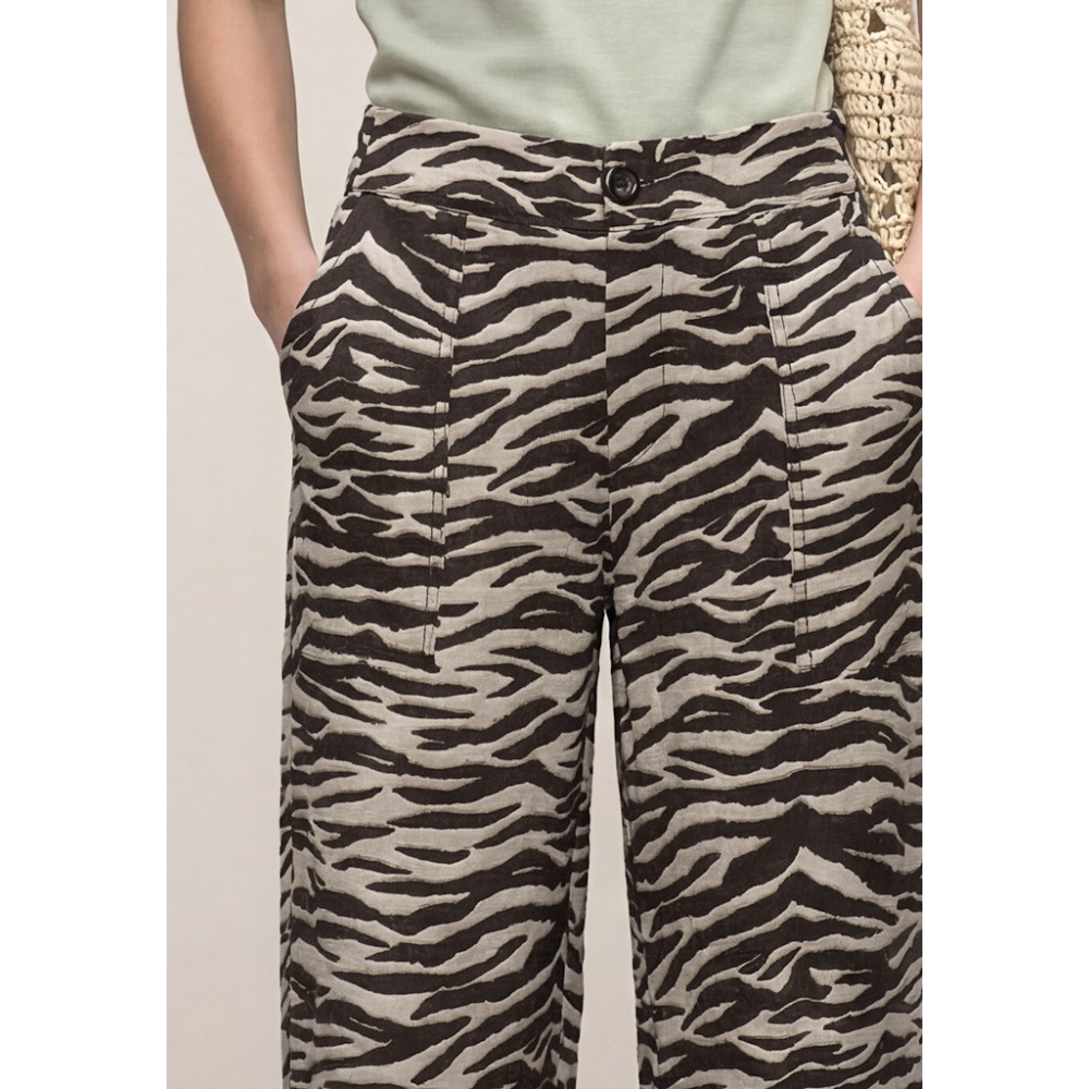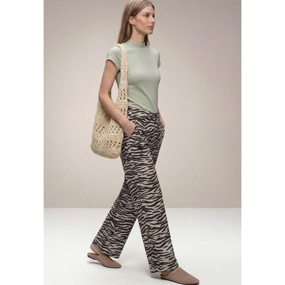 Comfortabele en luchtige broek van Street One met een crepe structuur. Deze casual broek met leo print heeft een fijne pasvorm door de hoge taille en wijde broekspijpen.