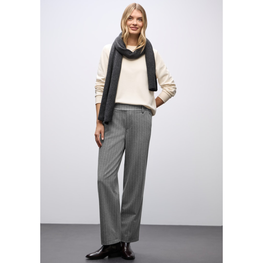 Street One Broek Pinstripe Dark Pelican Grey
