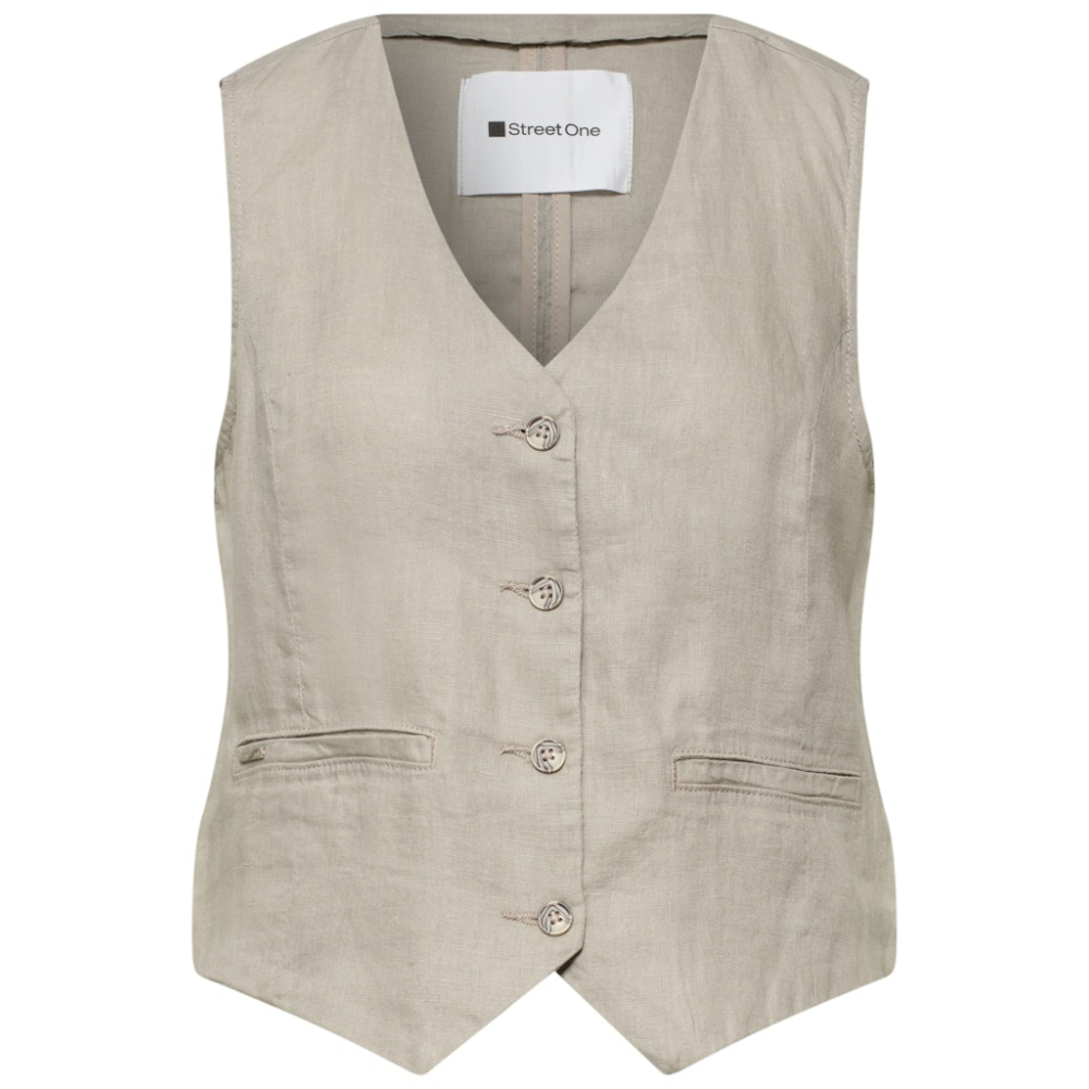 Dit heerlijke linnen gilet van Street One met een V-hals en knoopsluiting is het perfecte item voor een laagjes outfit. Zacht, comfortabel en stijlvol - een echt feel good item voor een zomerse look.