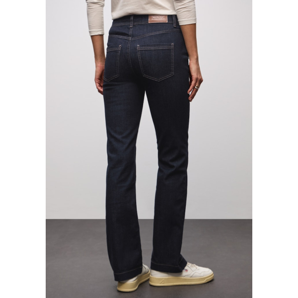 Deze boot cut jeans van Street One heeft een figuurverhogende pasvorm, een hoge taille en uitlopende pijpen.