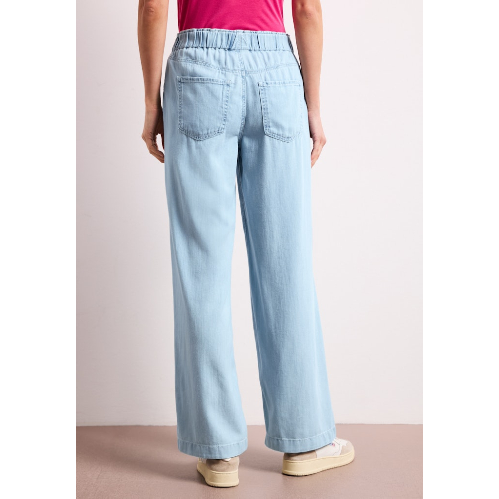 Casual en super comfortabele jeans van Street One in de Emee stijl met een elastische paperbag tailleband. Deze broek heeft een hoge taille en wijde broekspijpen.