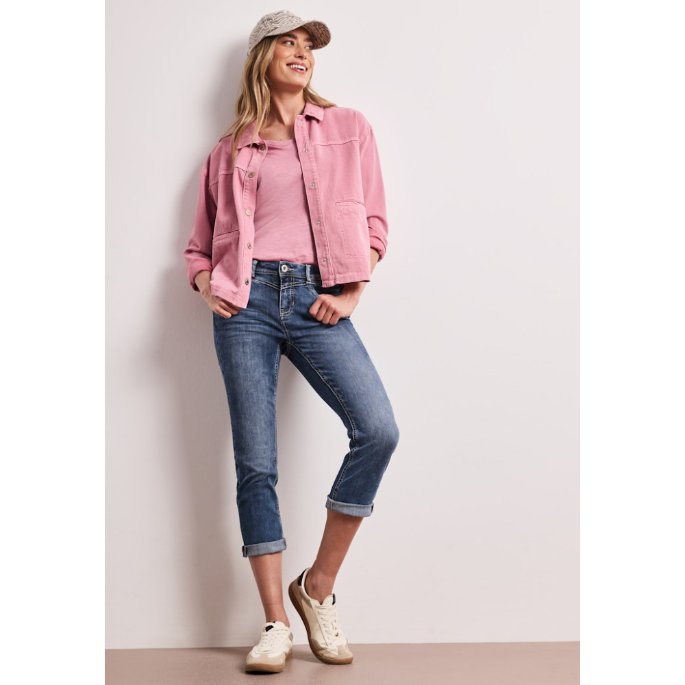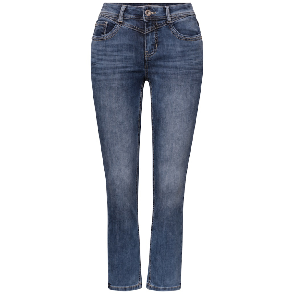 Casual jeans van Street One in de Jane stijl met een middelhoge taille en slanke 7/8 broekspijpen. Deze 5-pocket broek heeft praktische steek- en achterzakken en biedt veel comfort.