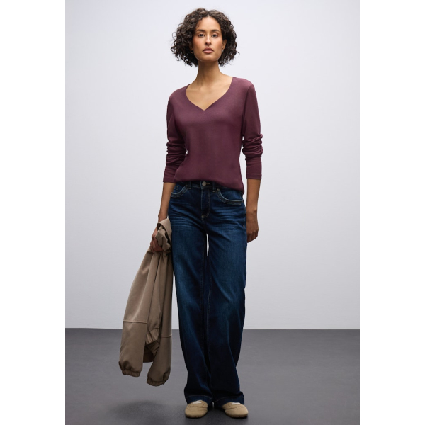 Dit effen Street One shirt heeft een hartvormige halslijn voor een vrouwelijke touch.