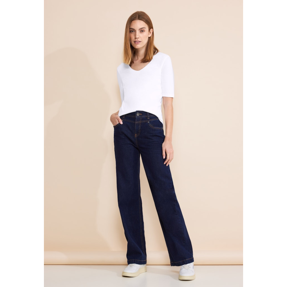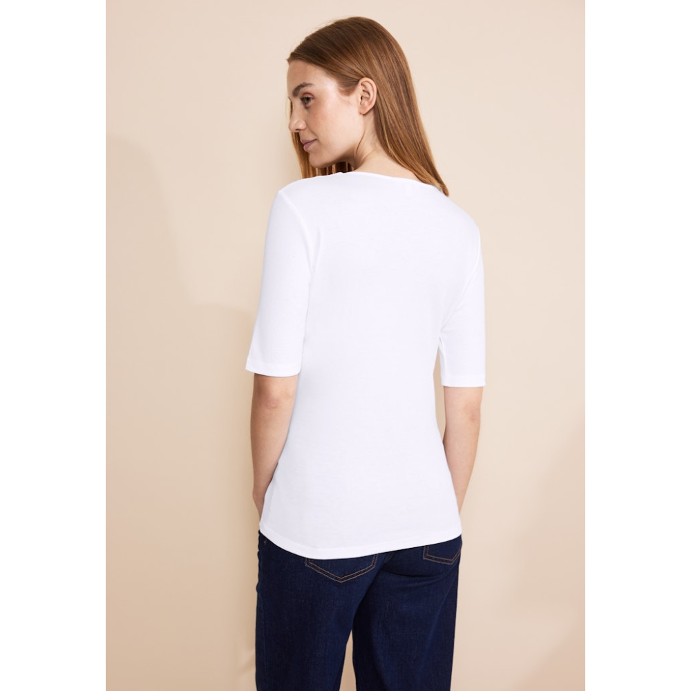 Het Palmira shirt van Street One met verlengde T-shirt mouwen, een afgeronde V-hals en een losse pasvorm is een absolute must-have in je garderobe!
