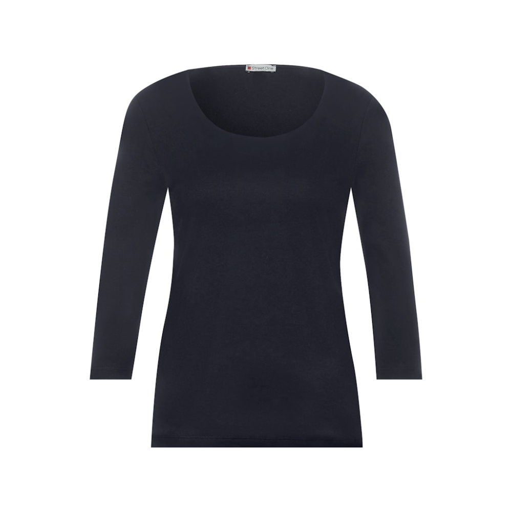Tijdloos sportief effen shirt van Street One met een onde hals en 3/4 mouwen. Ideaal om te combineren met je favoriete spijkerbroek, blouse of vest voor een casual look!