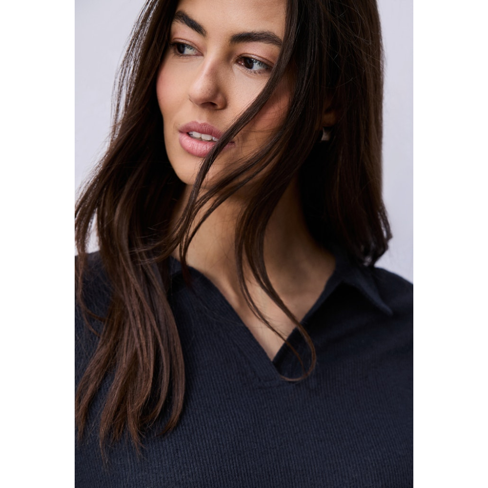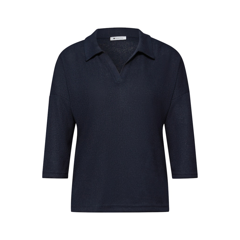 Dit gebreide polo shirt van Street One heeft een sportieve polokraag en 3/4 mouwen. Het kan eenvoudig op verschillende manieren worden gecombineerd - casual of iets chiquer. Een comfortabele favoriet voor moderne casual looks.