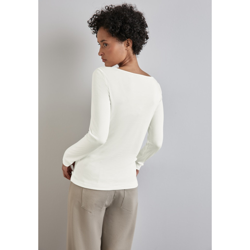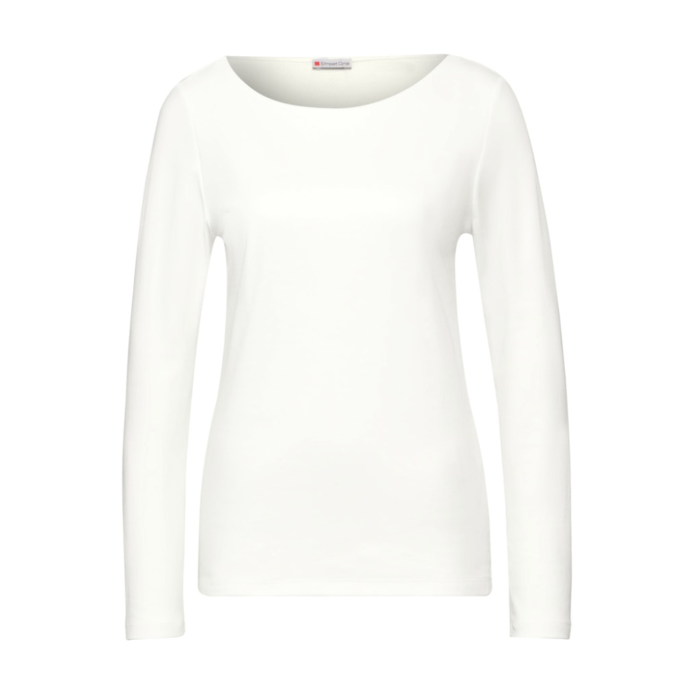Effen shirt van Street One in de Lanea stijl met lange mouwen en een boothalslijn. Gemaakt van 50% modaal en 50% katoen Kleur : Off White