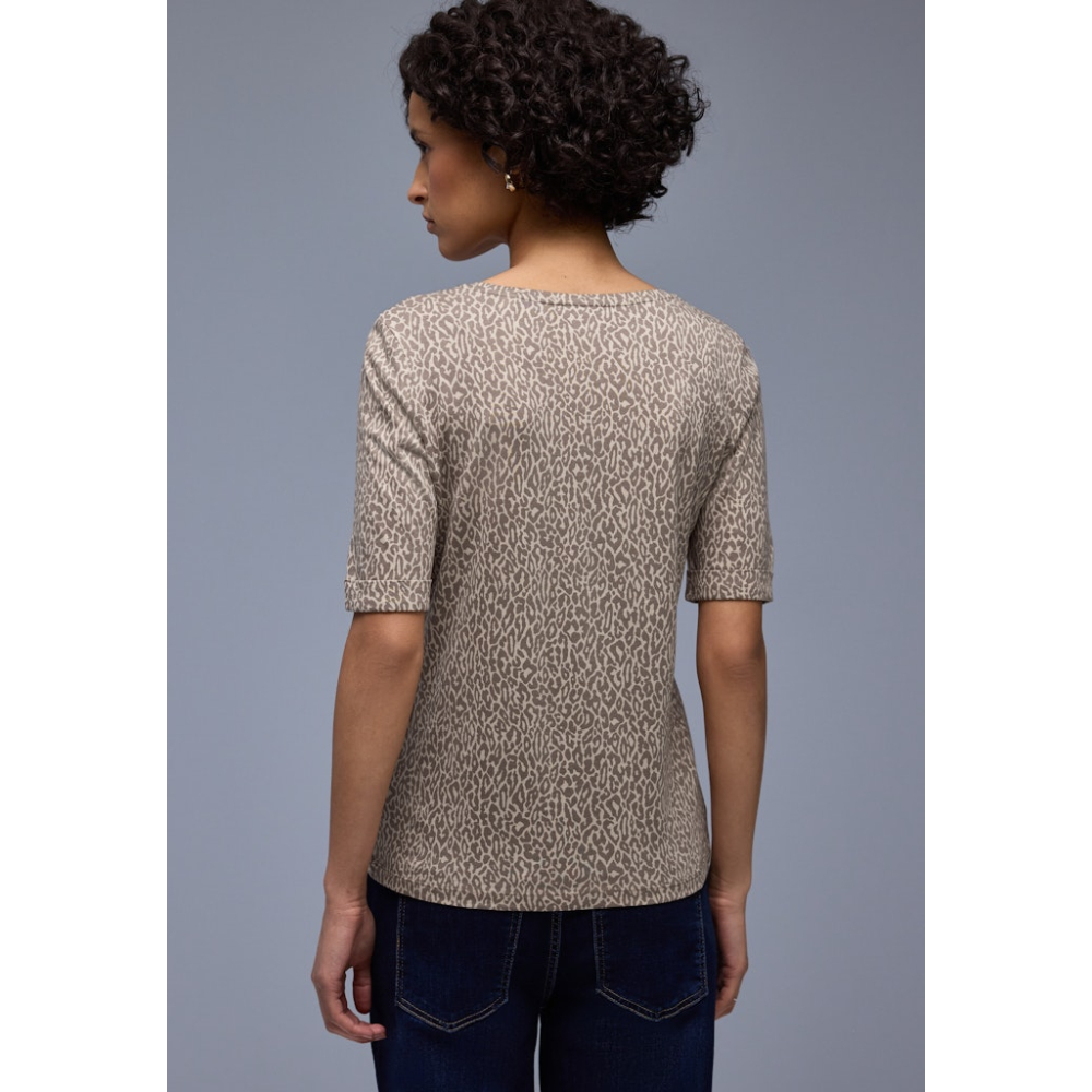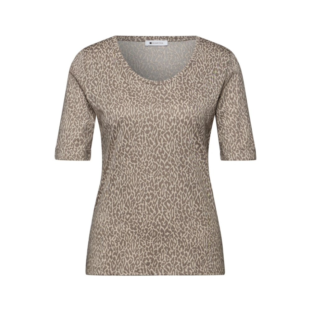 Dit comfortabele shirt van Street One heeft een ronde V-hals en leopard print die zorgt voor een casual look. Gemaakt van 50% modal en 50% katoen Kleur : Light Terra Mocha