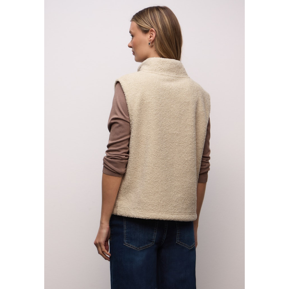 Deze zachte teddy spencer van Street One is ideaal voor knusse layering looks op frisse dagen. De col met ritssluiting geeft de stijl een moderne touch. Gemaakt van 100% polyester Kleur : Soft Fawn Beige