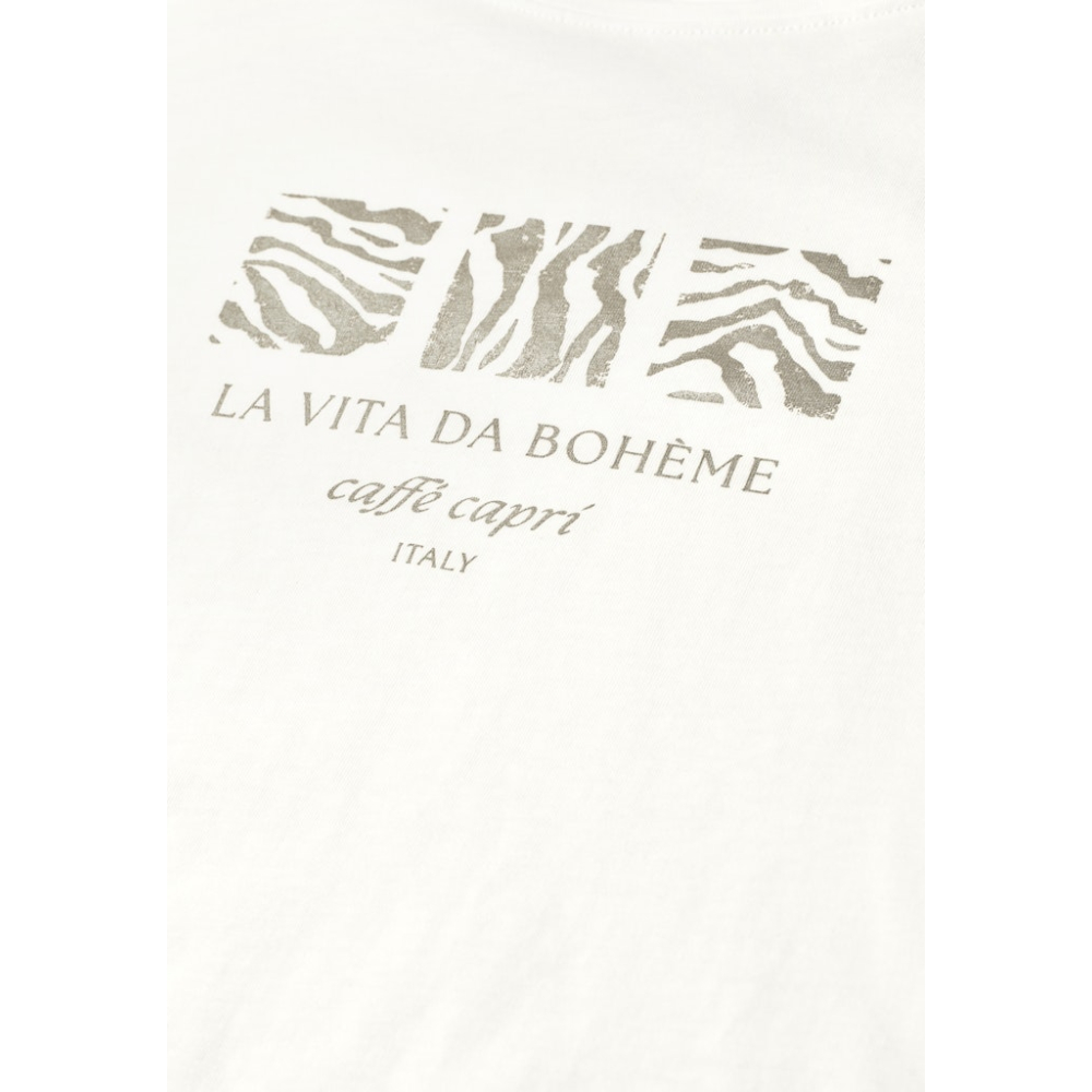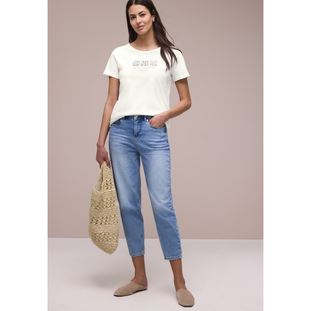 Jersey T-shirt van Street One met een La Vita Da Boheme print en ronde hals. Een veelzijdige basic voor de zomer! Gemaakt van 100% katoen Kleur : Off White