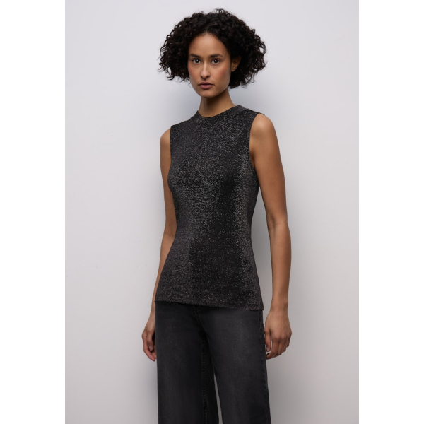 Met zijn col en glitterlook voegt deze mouwloze top van Street One een stijlvol accent toe aan feestelijke looks.