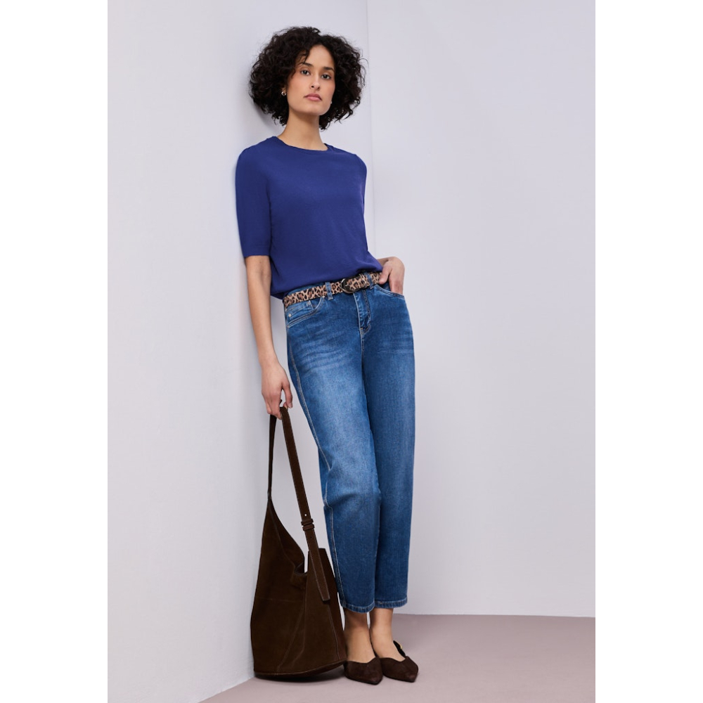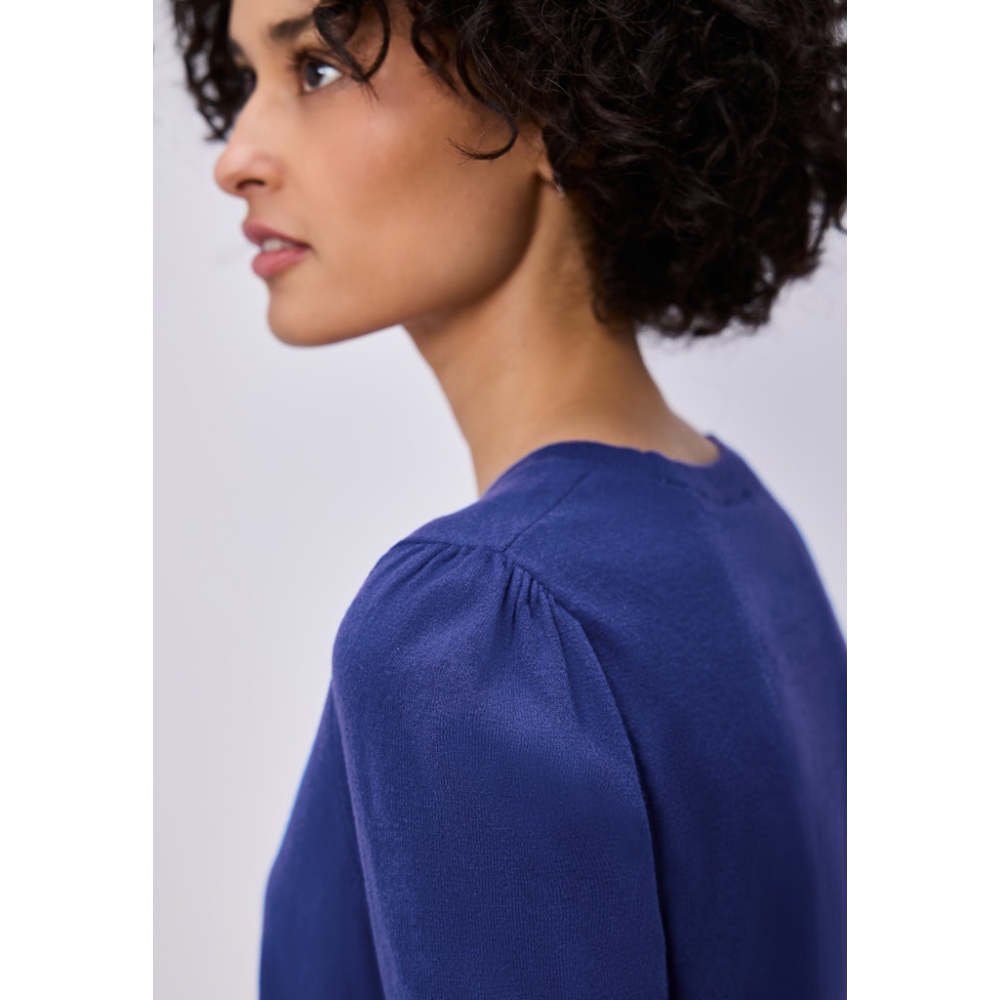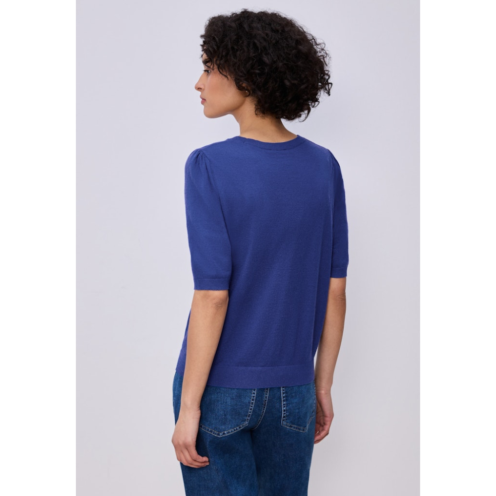 Deze effen gebreide trui van Street One heeft modieuze pofmouwen, een kort model en een klassieke ronde halslijn. Een ongecompliceerde stijl voor elke dag. Gemaakt van 30% polyester, 27% acryl, 23% polyamide en 20% viscose Kleur : Amparo Blue