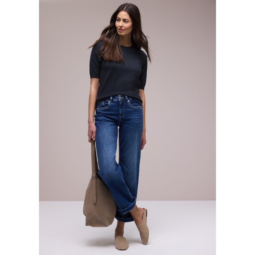 Deze gebreide trui met korte pofmouwen en ronde hals van Street One geeft jouw casual look een frisse, lichte touch. Het eenvoudige ontwerp in een effen kleur kan op verschillende manieren worden gestyled, terwijl de comfortabele materiaalmix zorgt voor een zacht gevoel. Ideaal voor het overgangsseizoen of voor elke dag.