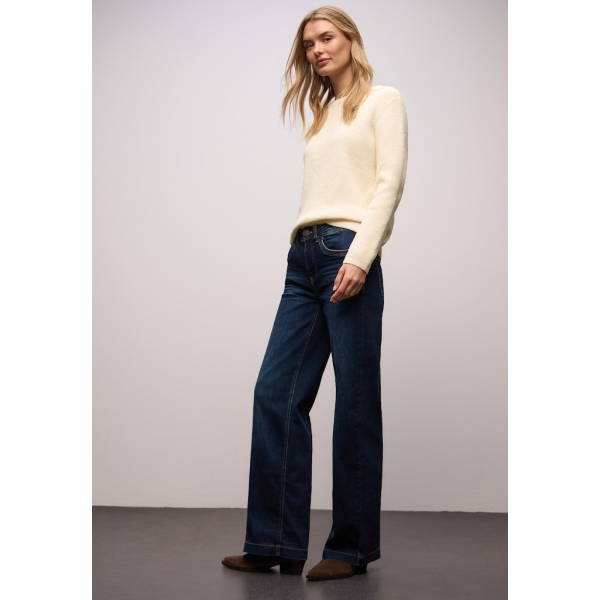 Deze Street One trui in een zachte chenille kwaliteit heeft een vrouwelijke boothals.