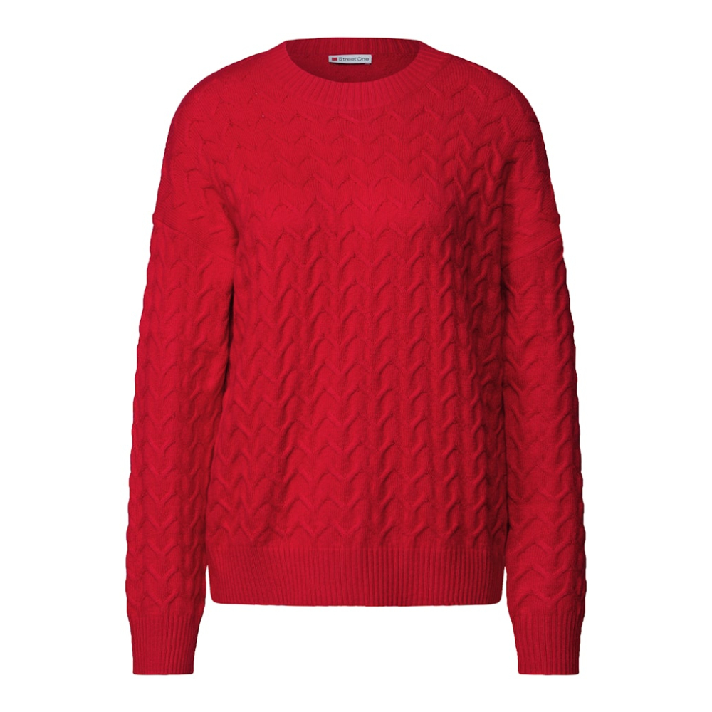 Modieuze en comfortabele trui van Street One met een ronde halslijn en structuurpatroon. Perfect voor stijlvolle alledaagse outfits met een feel good-factor. Gemaakt van 40% katoen, 37% polyacryl, 20% nylon en 3% elastaan Kleur : Racing Red