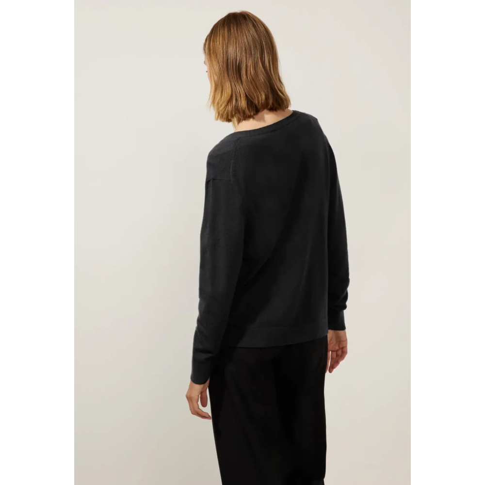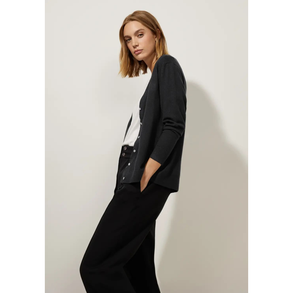 Klassiek vest van Street One met een V-hals, knooppas en ribgebreide details. Deze allrounder is perfect voor verschillende outfits en gelegenheden.