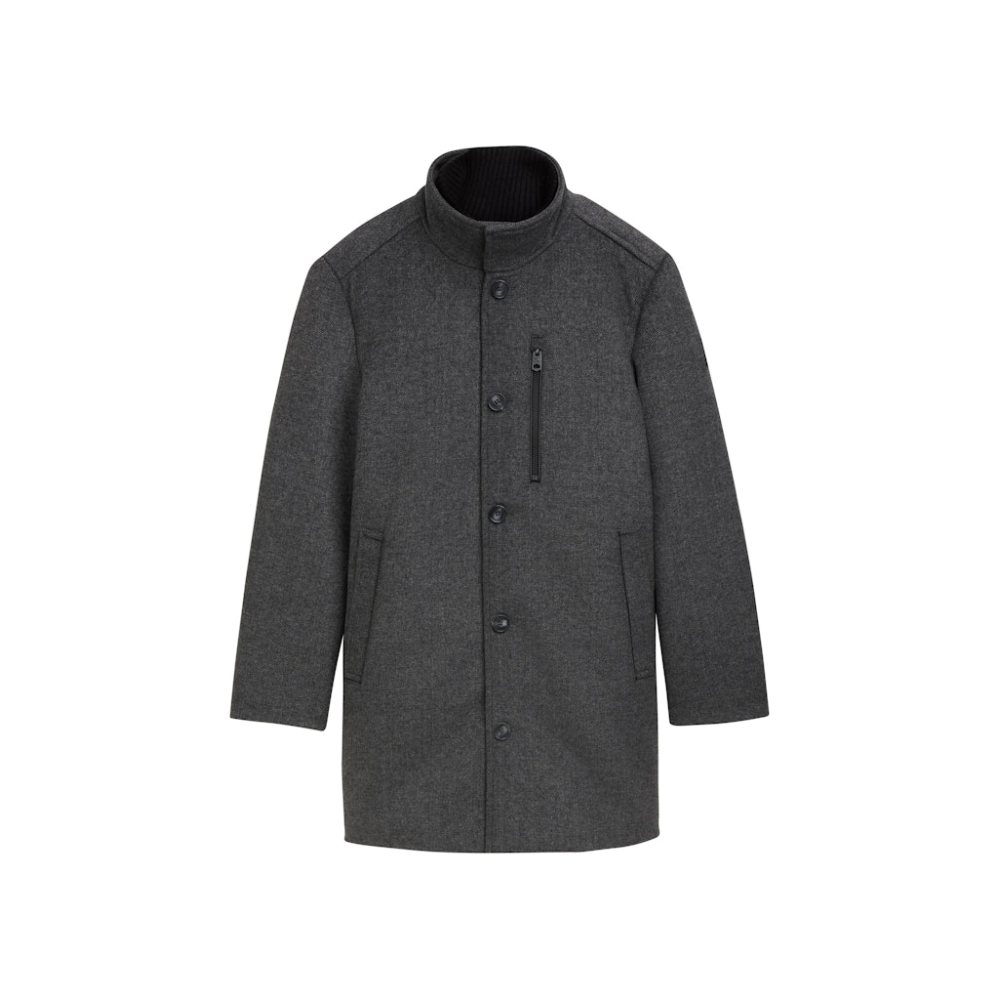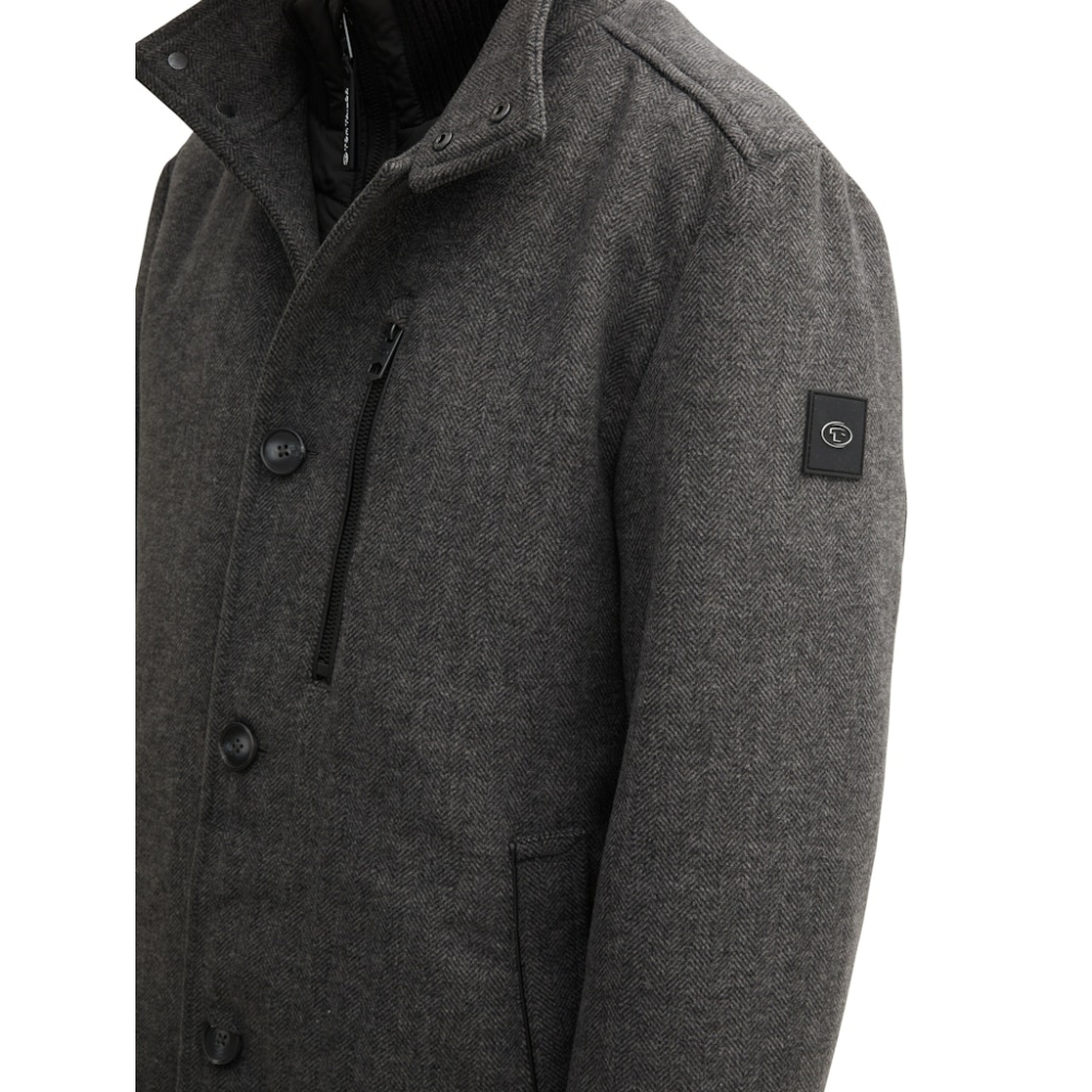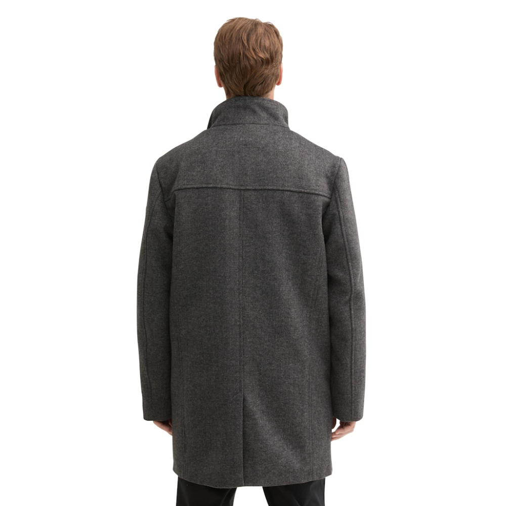 Jas van Tom Tailor met een opstaande kraag, rits en knoopsluiting, steek- en ritszakken. Regular Fit Gemaakt van 69% polyester, 20% wol, 5% viscose, 4% acryl en 2% polyamide Kleur : Dark Grey Black