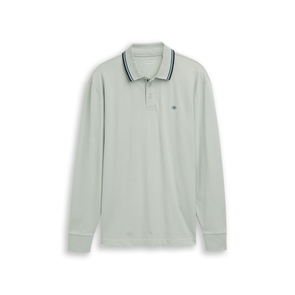 Comfortabel pique polo shirt van Tom Tailor met contrasterende strepen op de kraag. Deze longsleeve polo is afgewerkt met een knoopsluiting. Regular Fit Gemaakt van 95% katoen en 5% elastaan Kleur : Soft Greyish Green