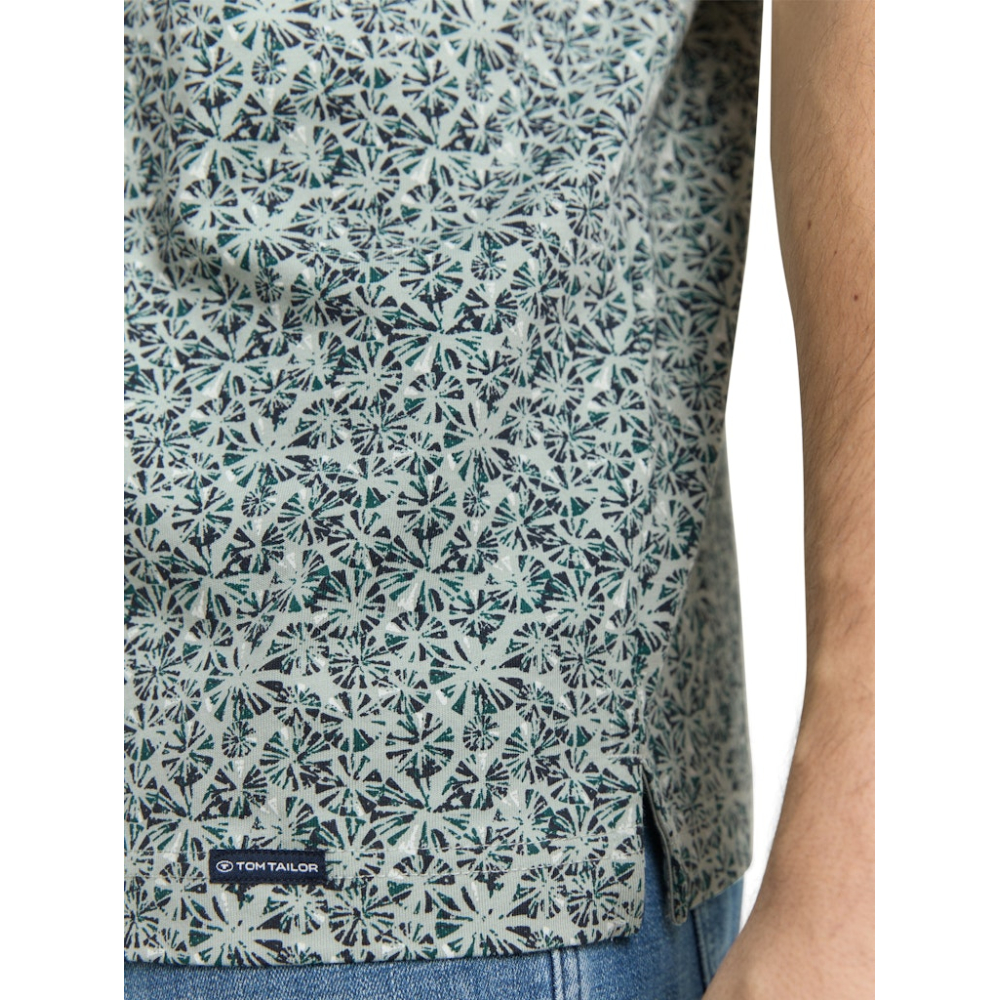 Polo shirt van Tom Tailor met allover print, contrasterende bies, geribbelde zoom op de kraag en mouwen, knoopsluiting en korte zijsplitten. Slim Fit Gemaakt van 100% katoen Kleur : Mint