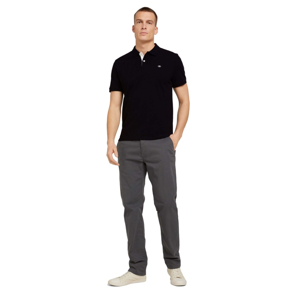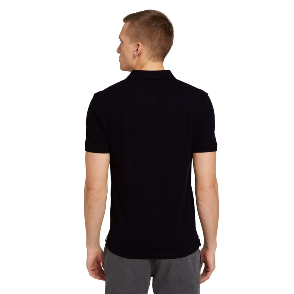 Polo shirt van Tom Tailor met contrasterende bies, geribbelde zoom op de kraag en mouwen, knoopsluiting en korte zijsplitten. Regular Fit Gemaakt van 100% katoen Kleur: Black