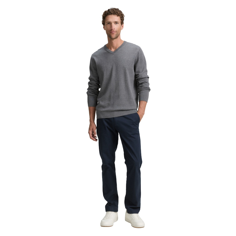 Fijngebreide trui van Tom Tailor met een V-hals en geribde boorden. Perfect te combineren met een overhemd. Regular Fit Gemaakt van 100% katoen Kleur : Classic Dark Grey